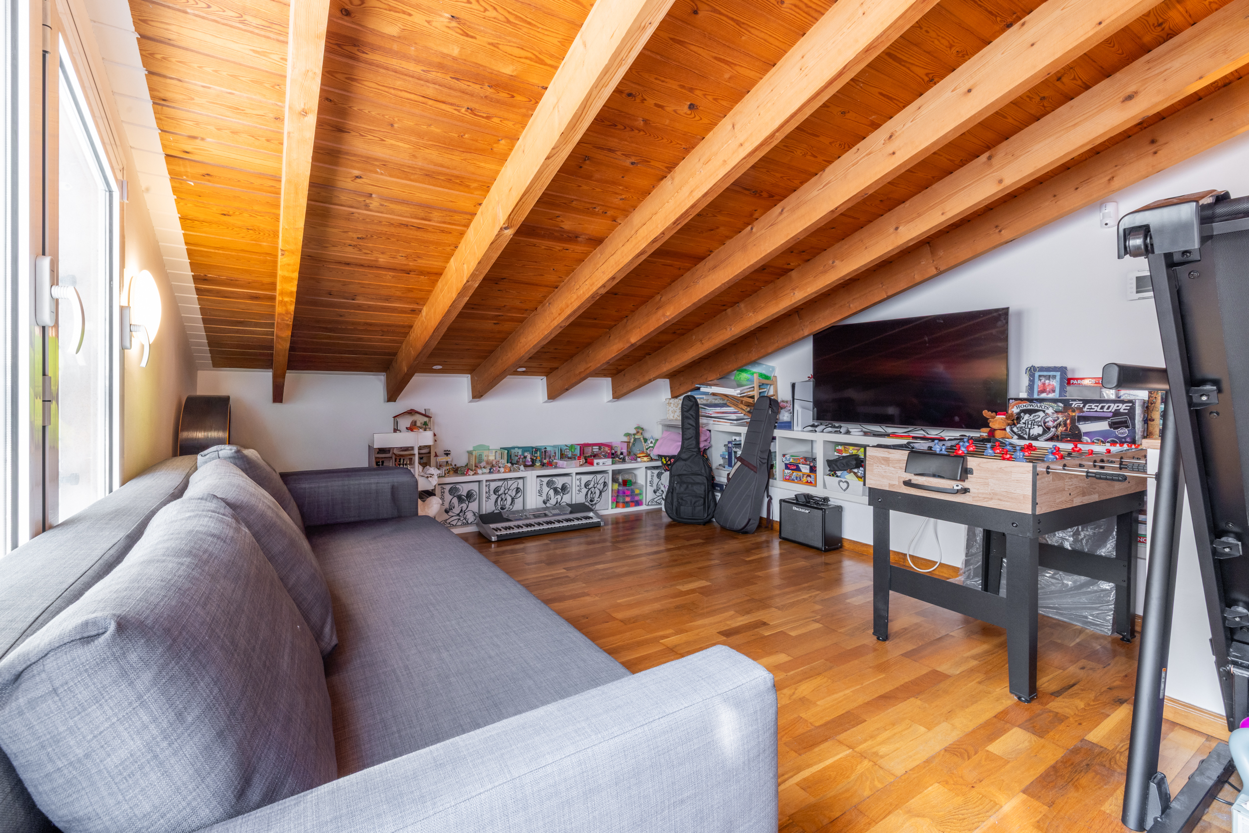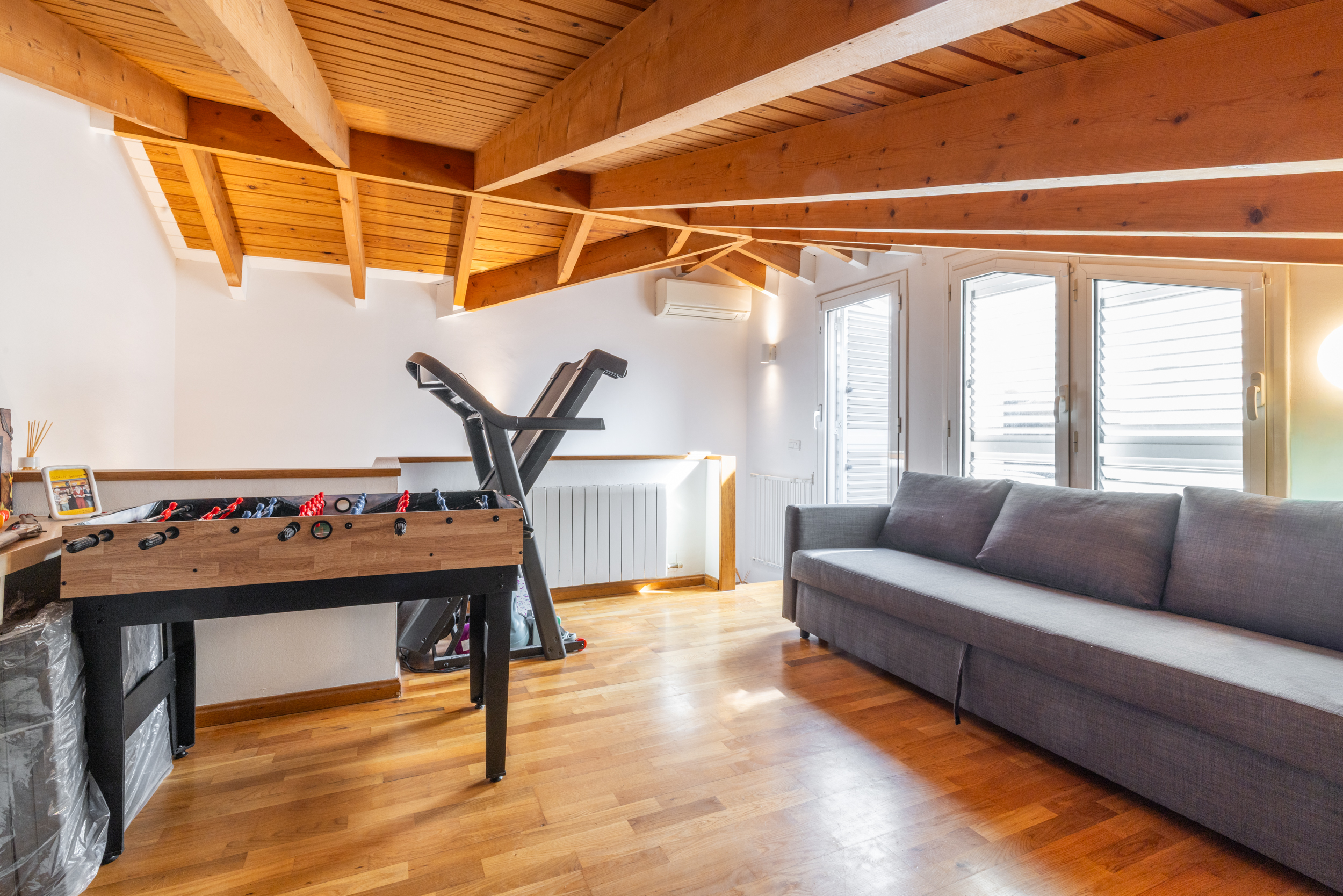 En el tercer nivel, una buhardilla de 15 m² se adapta a cualquier necesidad: despacho, estudio, sala de juegos o una cuarta habitación. Desde aquí se accede a una terraza soleada de 7 m², ideal para disfrutar del aire libre, leer o relajarse en total privacidad.
