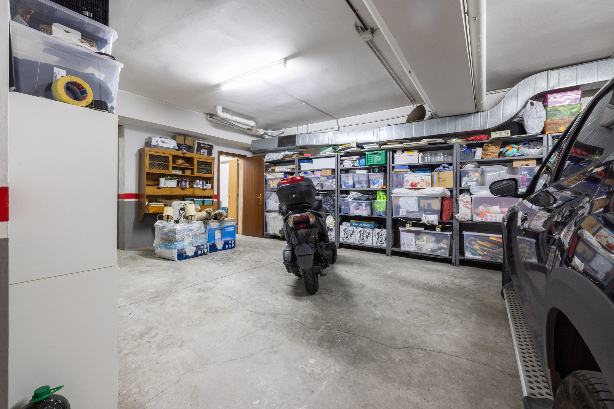 En el sótano, la propiedad cuenta con un amplio garaje privado y dos trasteros, aportando espacio extra y comodidad de almacenamiento.