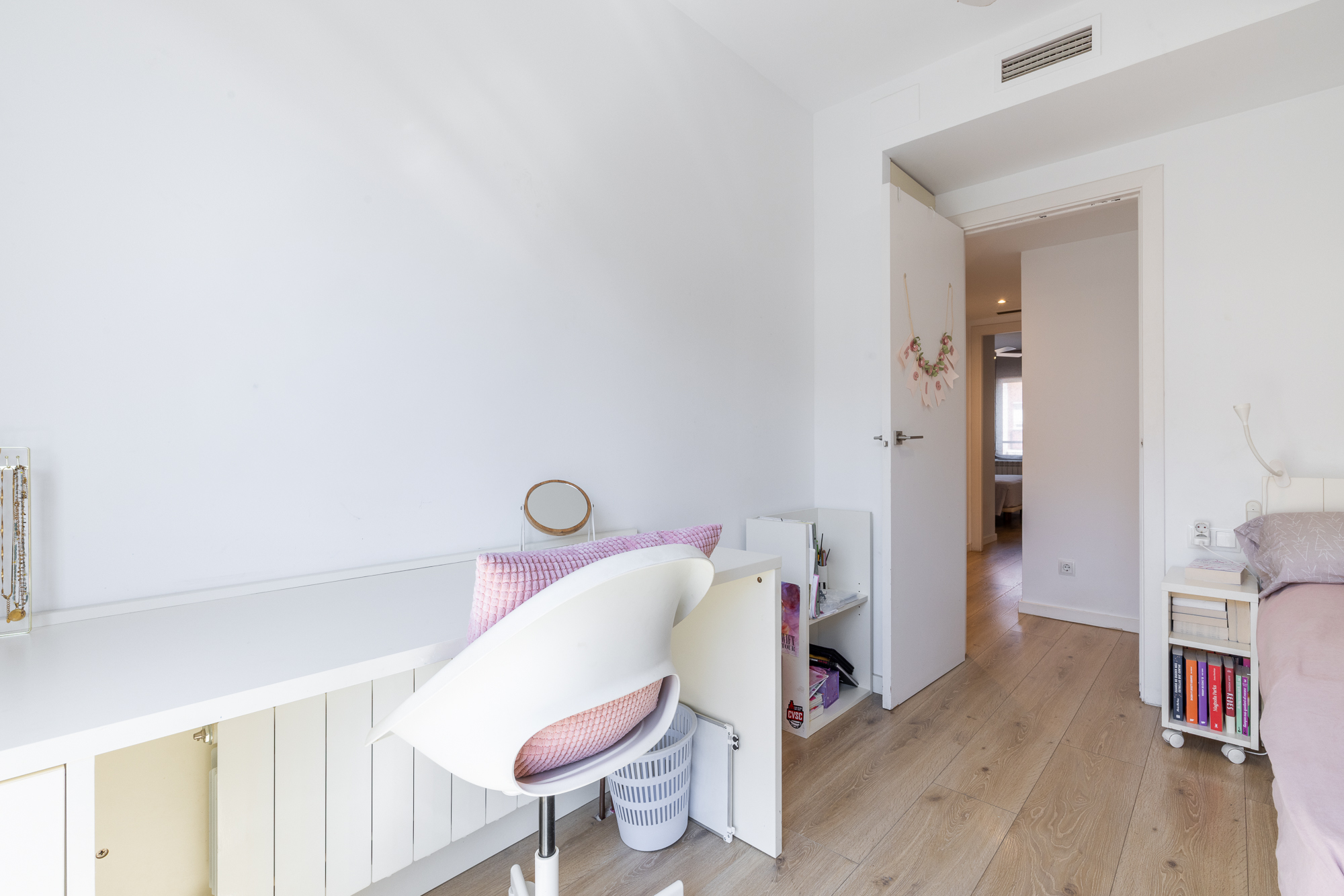 La zona de noche se compone de una suite principal con baño completo y vestidor. Además de dos habitaciones muy luminosas con un baño compartido.