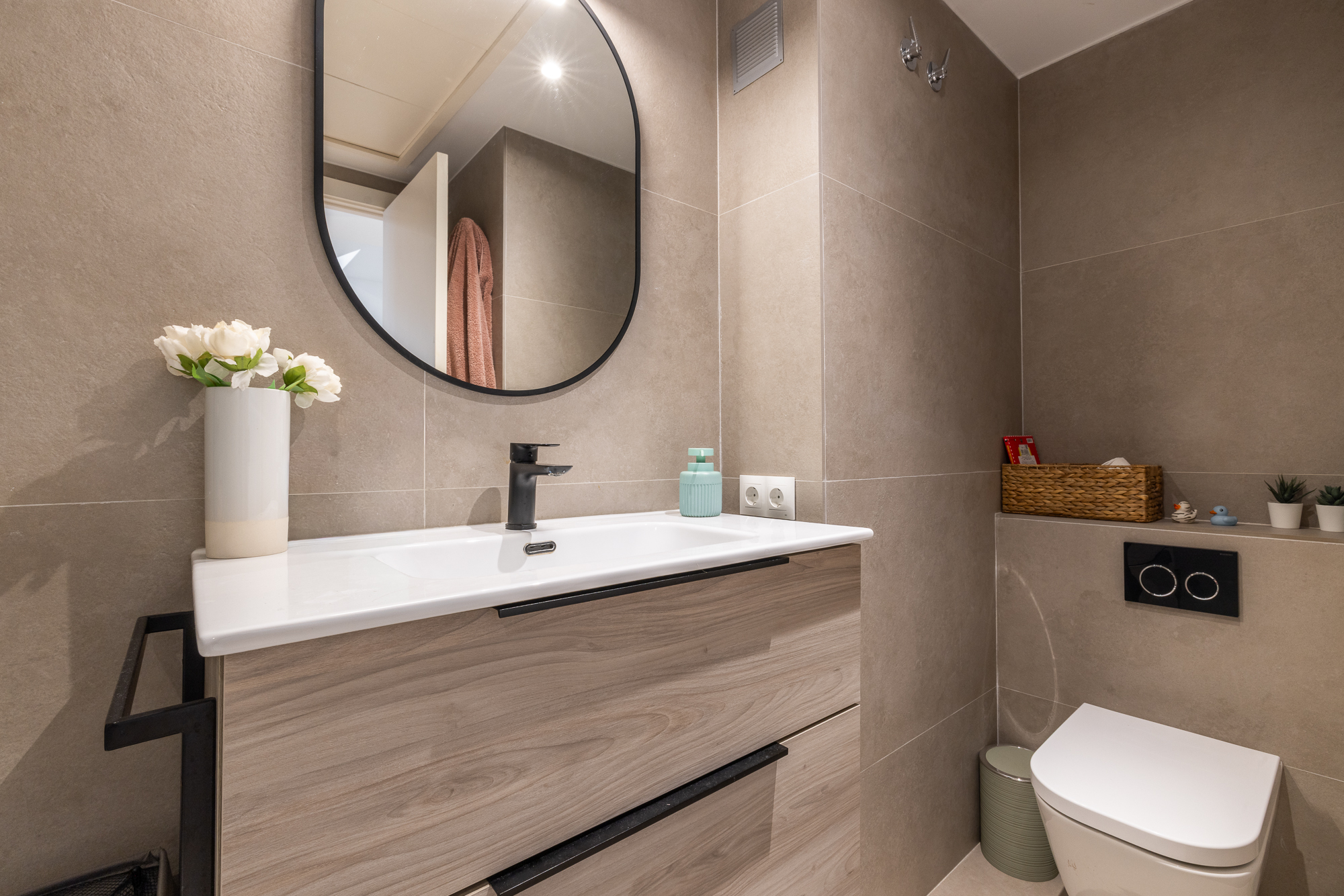 Al acceder a la vivienda, encontramos un recibidor que distribuye el acceso hacia una cocina moderna y completamente equipada, un aseo de cortesía y un amplio salón-comedor con salida directa a la terraza. Desde aquí se accede también a la zona comunitaria ajardinada con piscina, perfecta para disfrutar del aire libre en un entorno familiar.