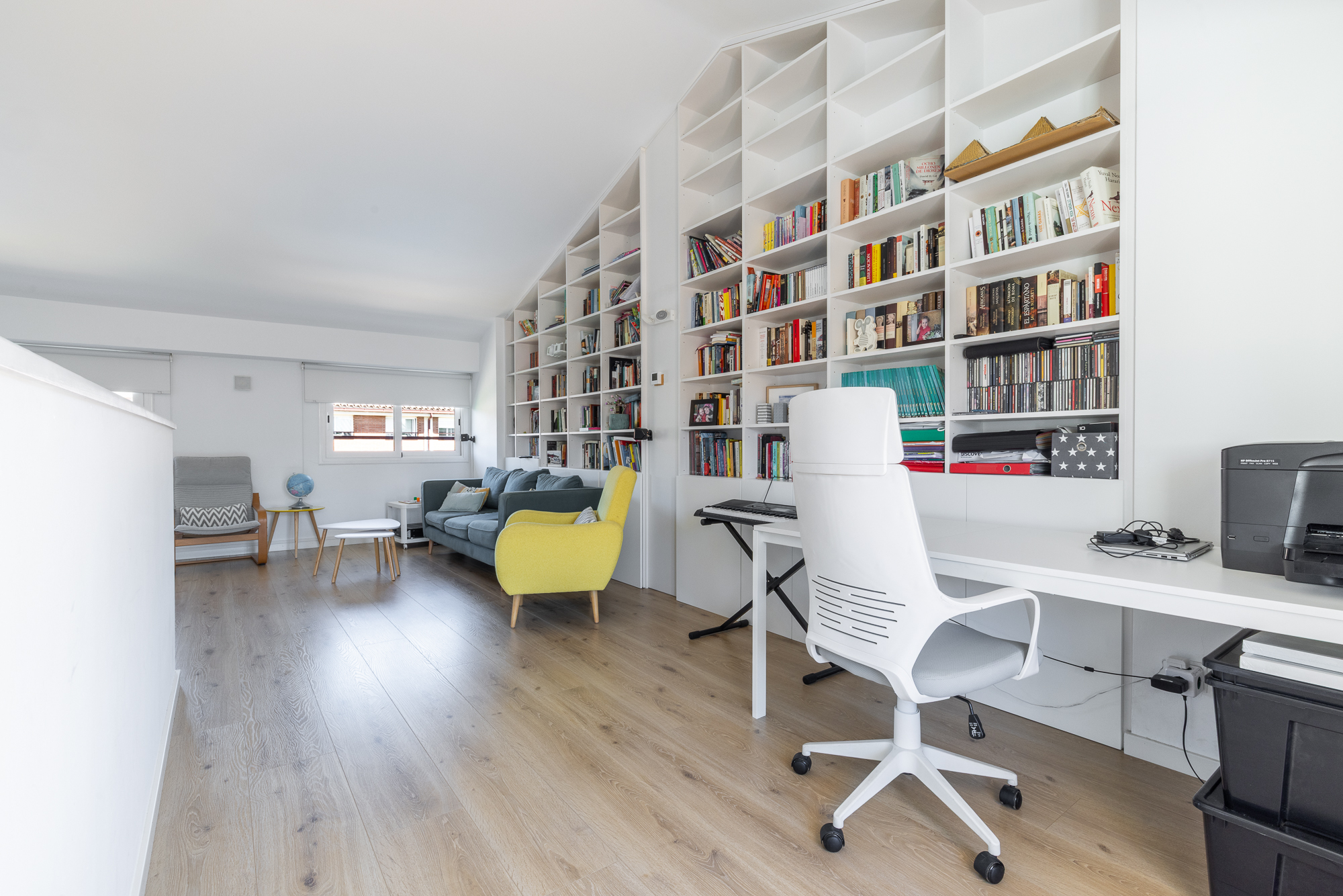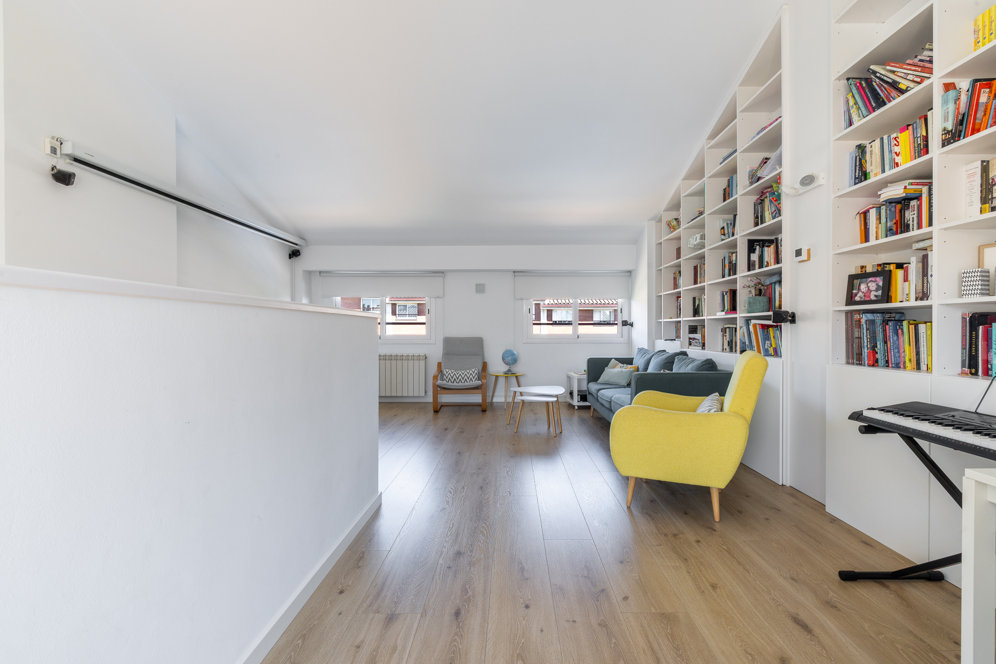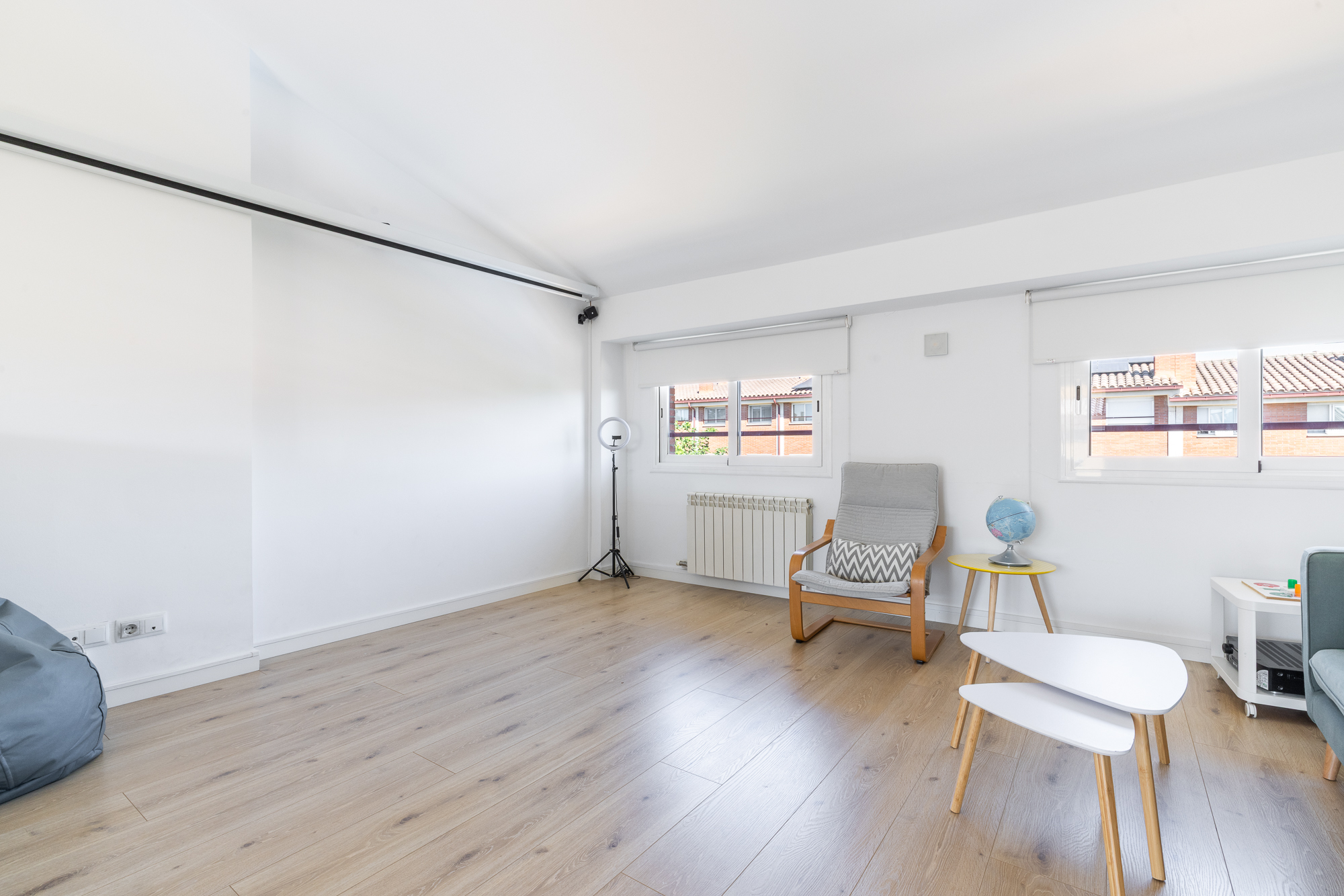En la planta superior se encuentra un espacio polivalente con múltiples posibilidades: dos dormitorios adicionales, despacho, sala de juegos o gimnasio. Además, cuenta con salida a una terraza privada de 10 m², con vistas despejadas y orientación sur.