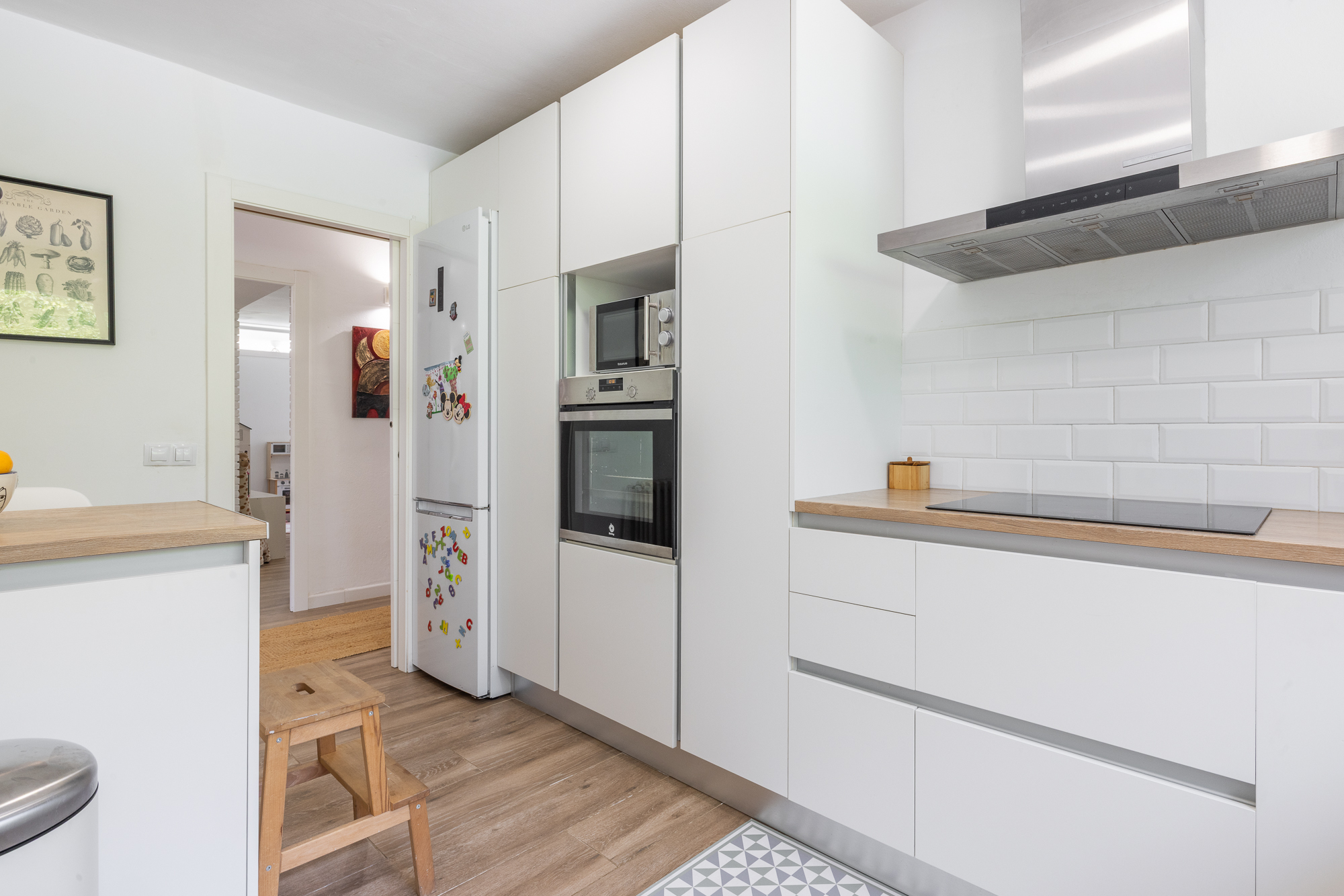 Mediante el recibidor encontramos a mano izquierda una habitación doble con gran capacidad de almacenaje, una habitación triple fácilmente divisible según las necesidades, y una cocina moderna y funcional, perfectamente equipada. En esta misma planta, se completa la distribución con un baño completo que incluye una práctica zona de lavadero, pensada para facilitar la vida diaria.