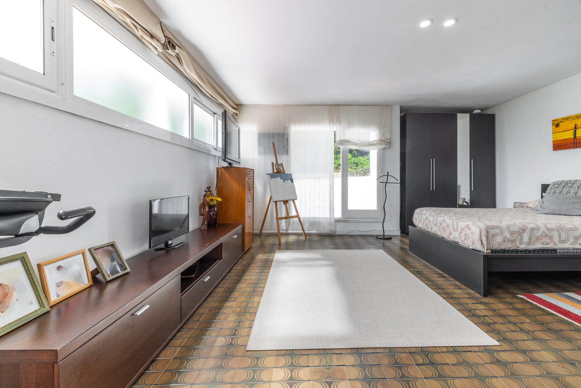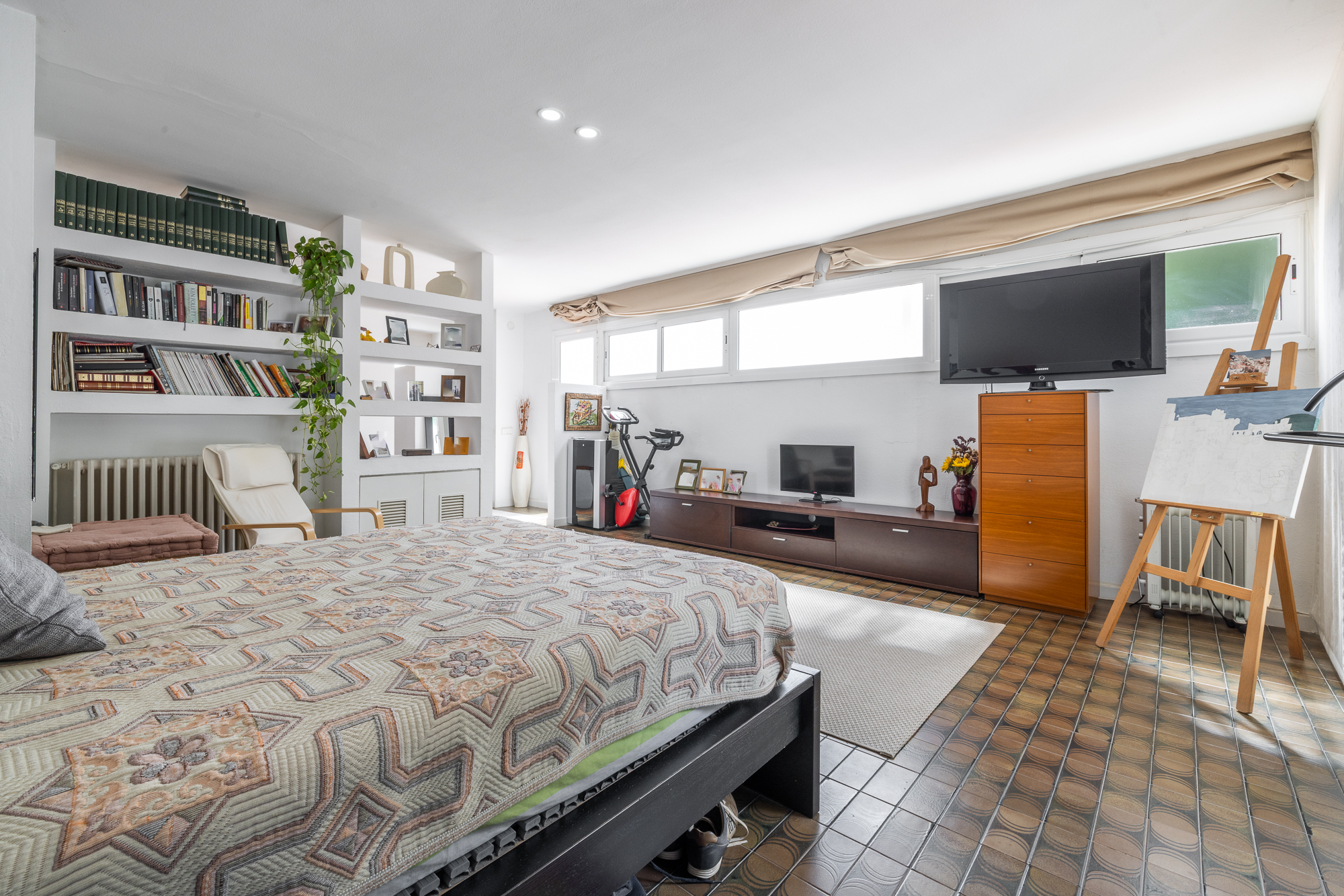 En la planta superior, destaca una amplia suite con baño privado, un espacio versátil que puede transformarse en despacho, gimnasio, sala de juegos o zona de relax, según las necesidades del momento. Además, cuenta con salida directa a una soleada terraza solárium, perfecta para disfrutar del exterior con total privacidad.