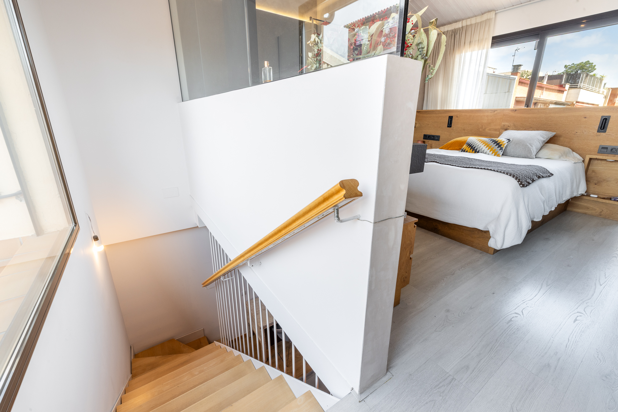 La segunda planta es una exclusiva suite privada con baño completo y jacuzzi, ideal para desconectar y relajarse. Esta estancia cuenta con dos terrazas privadas, orientadas al este y al oeste, para disfrutar del sol durante todo el día y vivir una conexión privilegiada con el exterior.