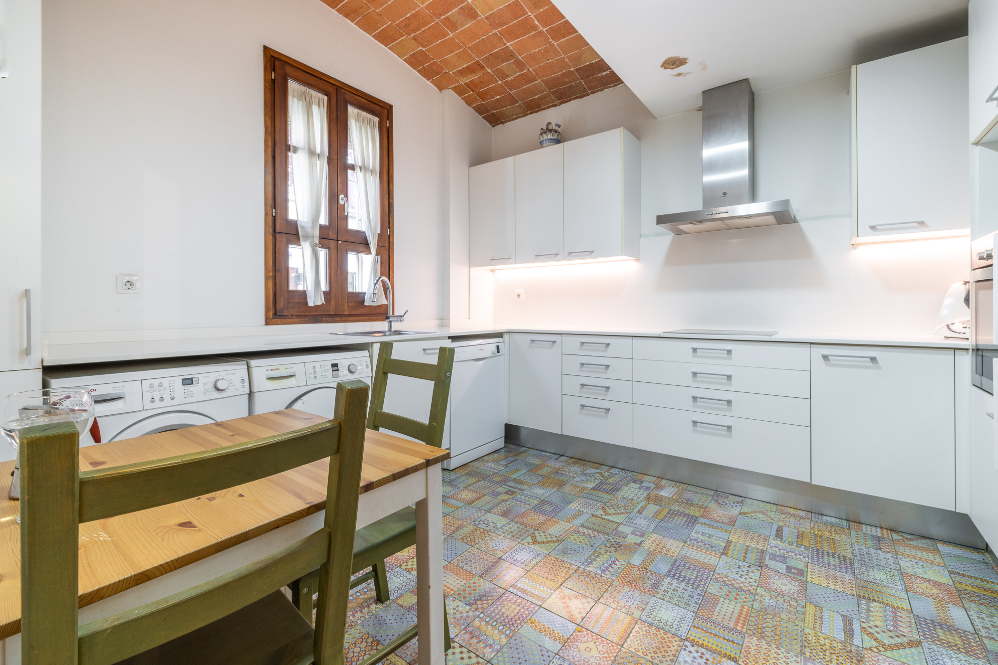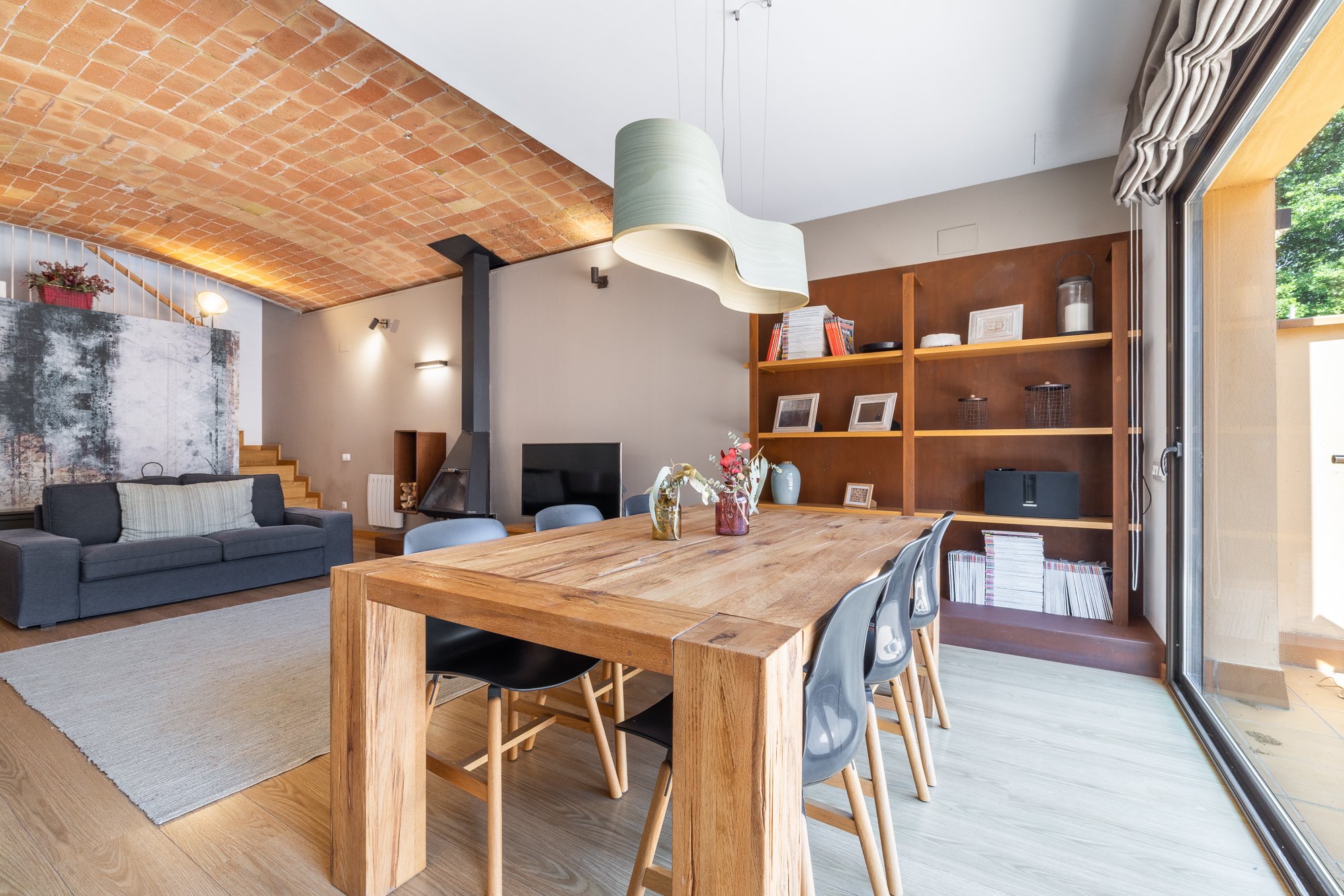 En la planta baja, nos recibe una cocina de ensueño, con un diseño funcional y elegante, realzada por una espectacular volta catalana y suelos de baldosas italianas. Junto a ella, un aseo de cortesía completa este nivel con estilo y practicidad. El salón-comedor, amplio y luminoso, mantiene la esencia tradicional con volta catalana y una acogedora chimenea, ofreciendo un ambiente ideal para compartir momentos en familia. Desde aquí se accede a una soleada terraza privada, perfecta para disfrutar de barbacoas, comidas al aire libre o un espacio seguro para los niños.