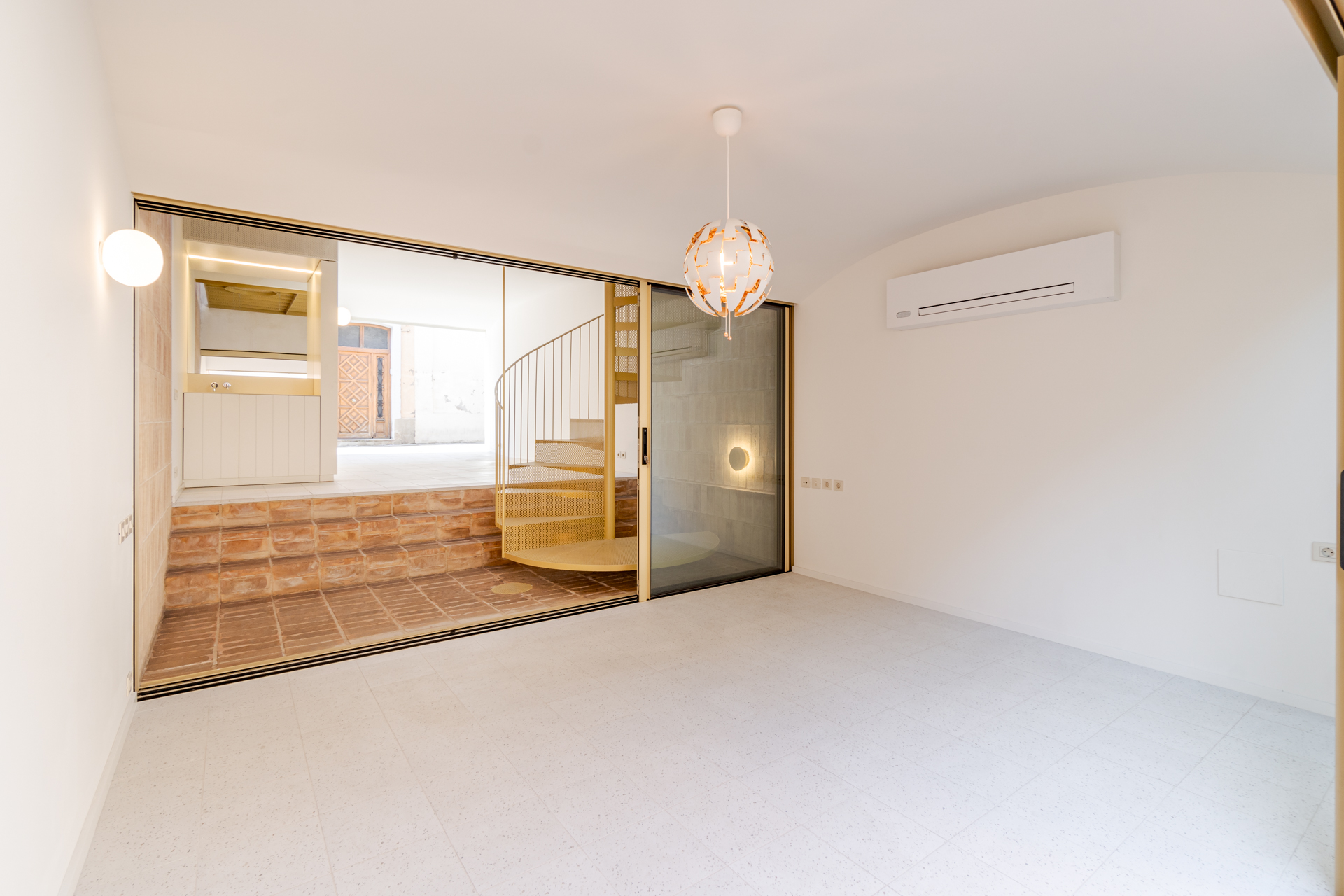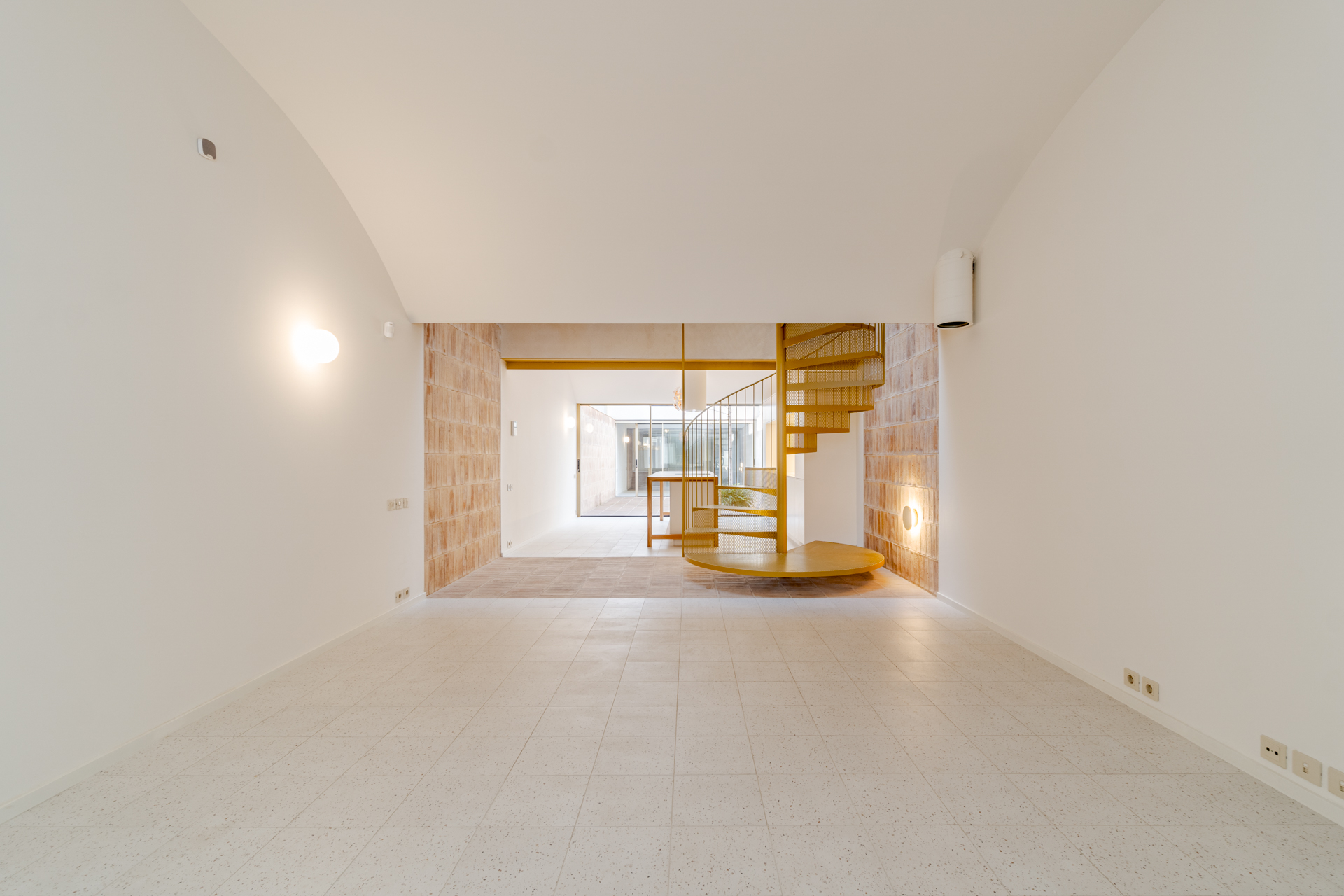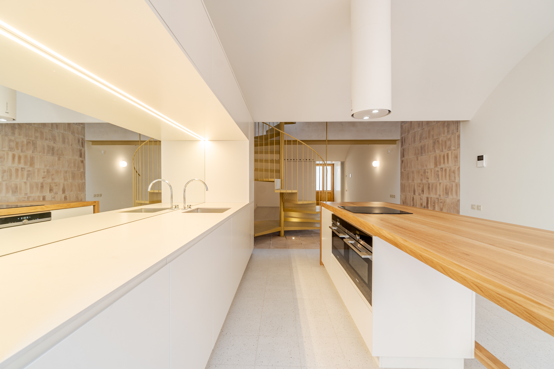 Accedemos a la vivienda por un práctico recibidor con paso directo al salón comedor, amplio y muy luminoso con techos altos y bóvedas catalanas, con acceso a una maravillosa cocina tipo office con una espectacular encimera. Consta también de un aseo de cortesía.