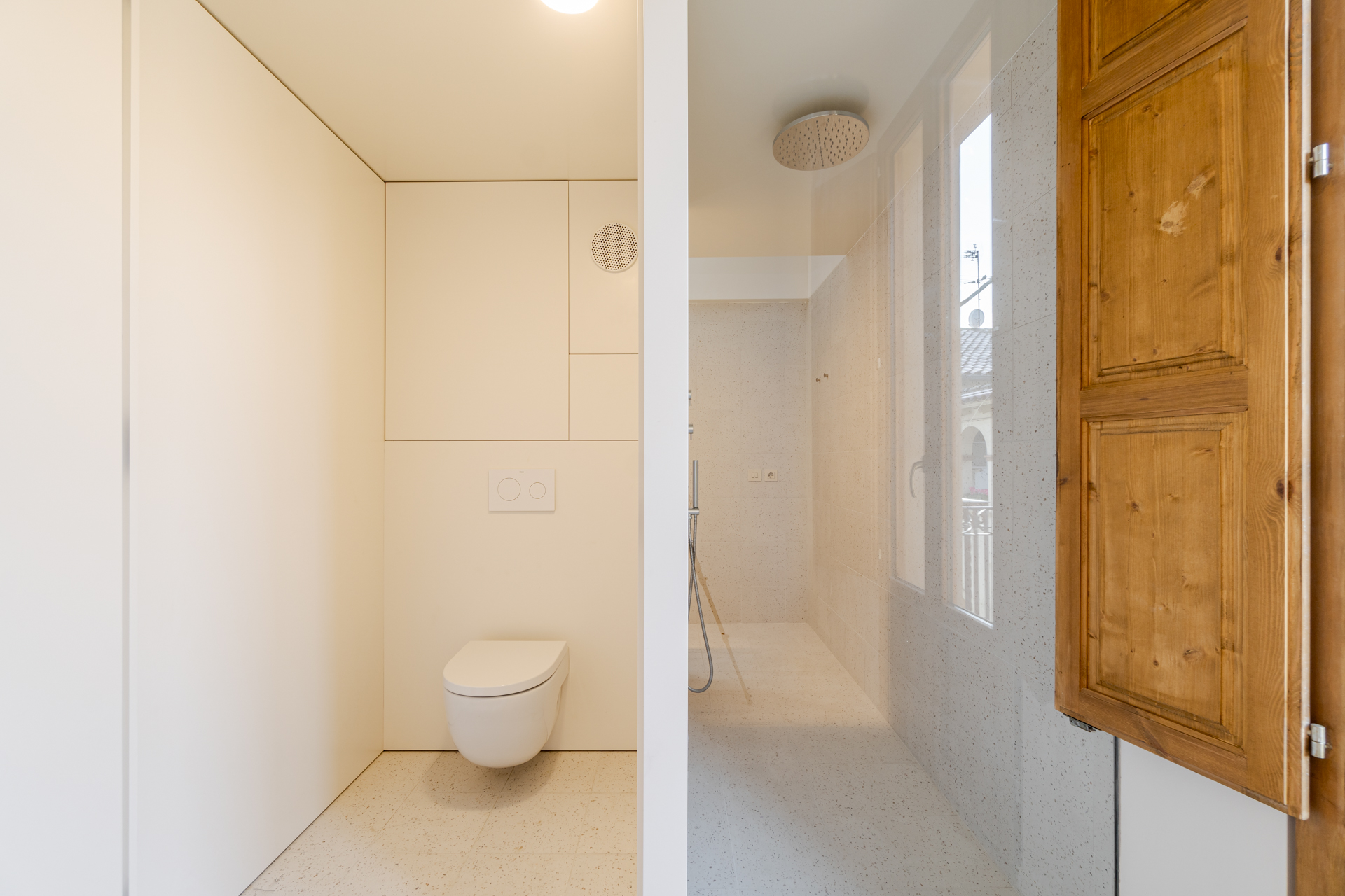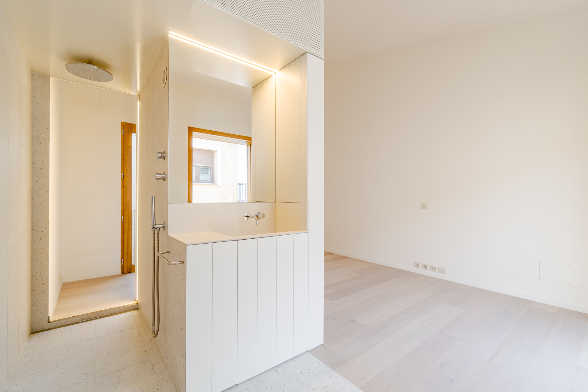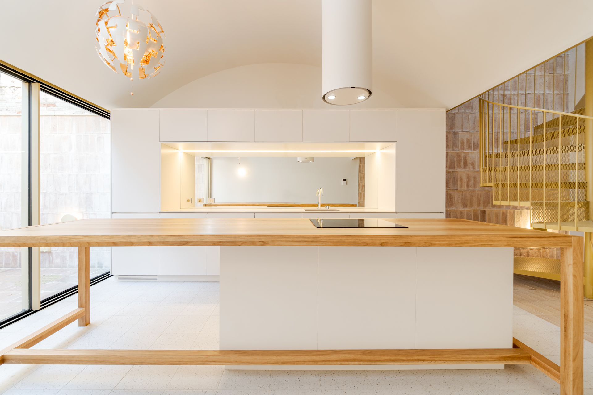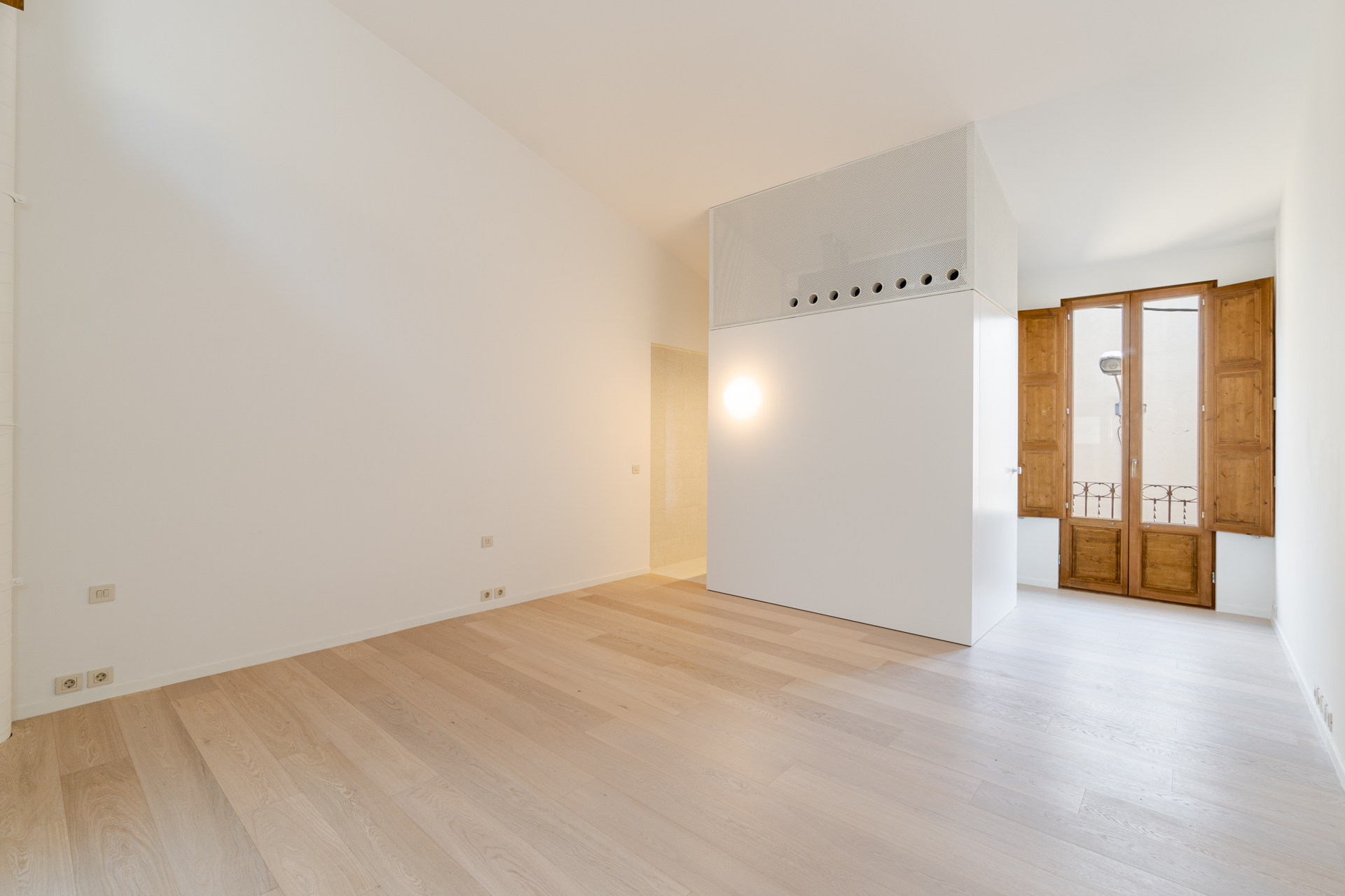 Accedemos a la vivienda por un práctico recibidor con paso directo al salón comedor, amplio y muy luminoso con techos altos y bóvedas catalanas, con acceso a una maravillosa cocina tipo office con una espectacular encimera. Consta también de un aseo de cortesía.