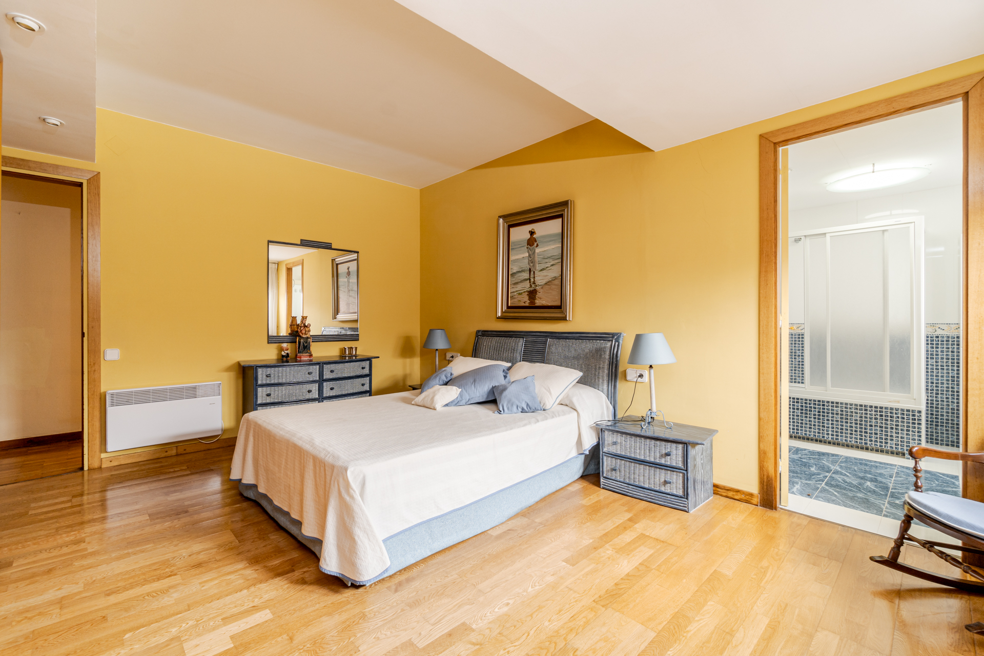 En la zona de noche hay un total de 5 habitaciones siendo todas ellas exteriores. Dos máster en suite, dos habitaciones dobles en suite y una habitación individual además de un baño completo de 4 piezas.