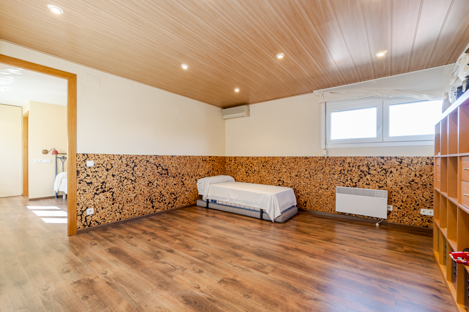 La planta superior dispone de una maravillosa sala polivalente con uso de despacho o salón con vistas despejadas, una habitación de juegos con potencial uso de vestidor y una habitación doble en suite.
