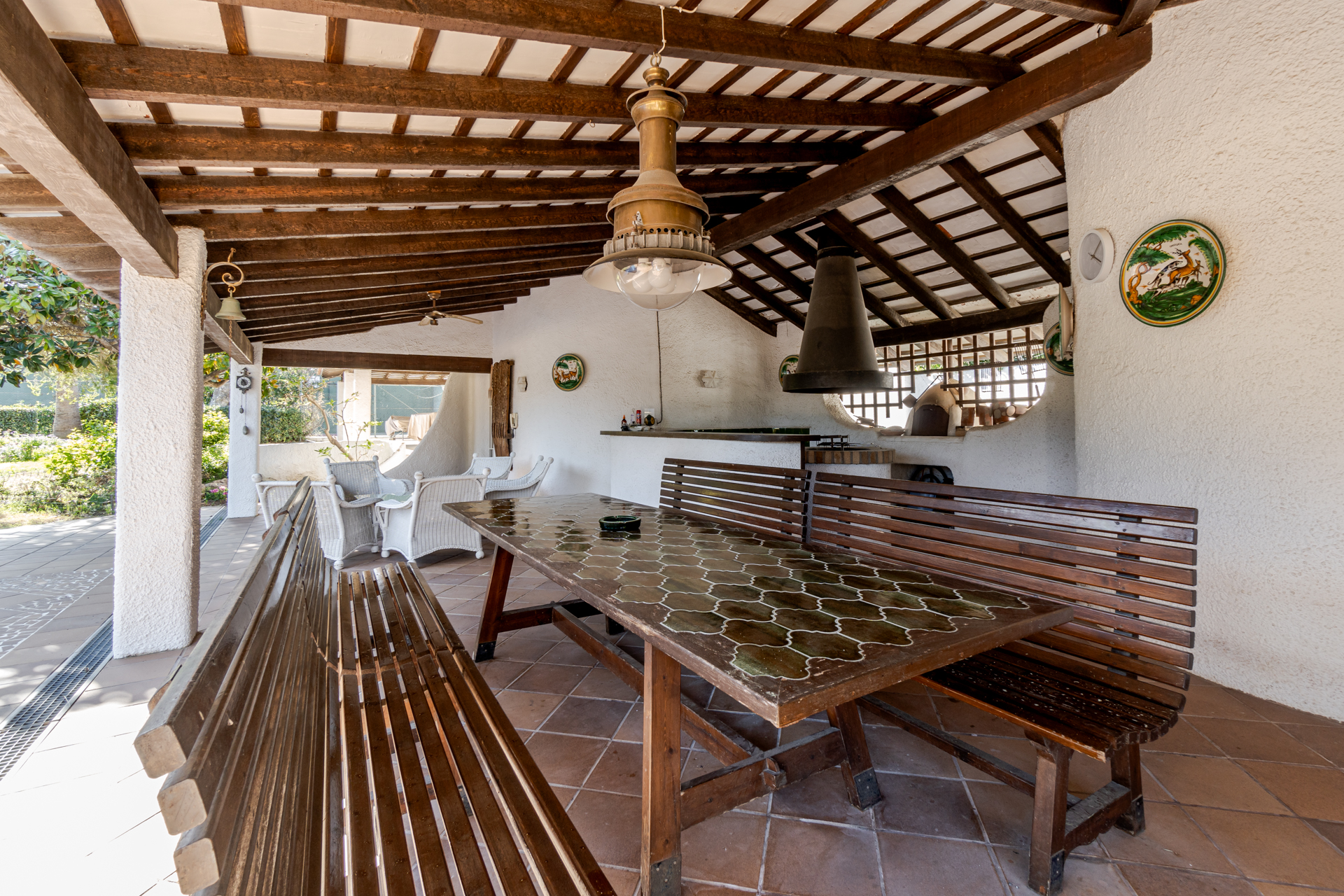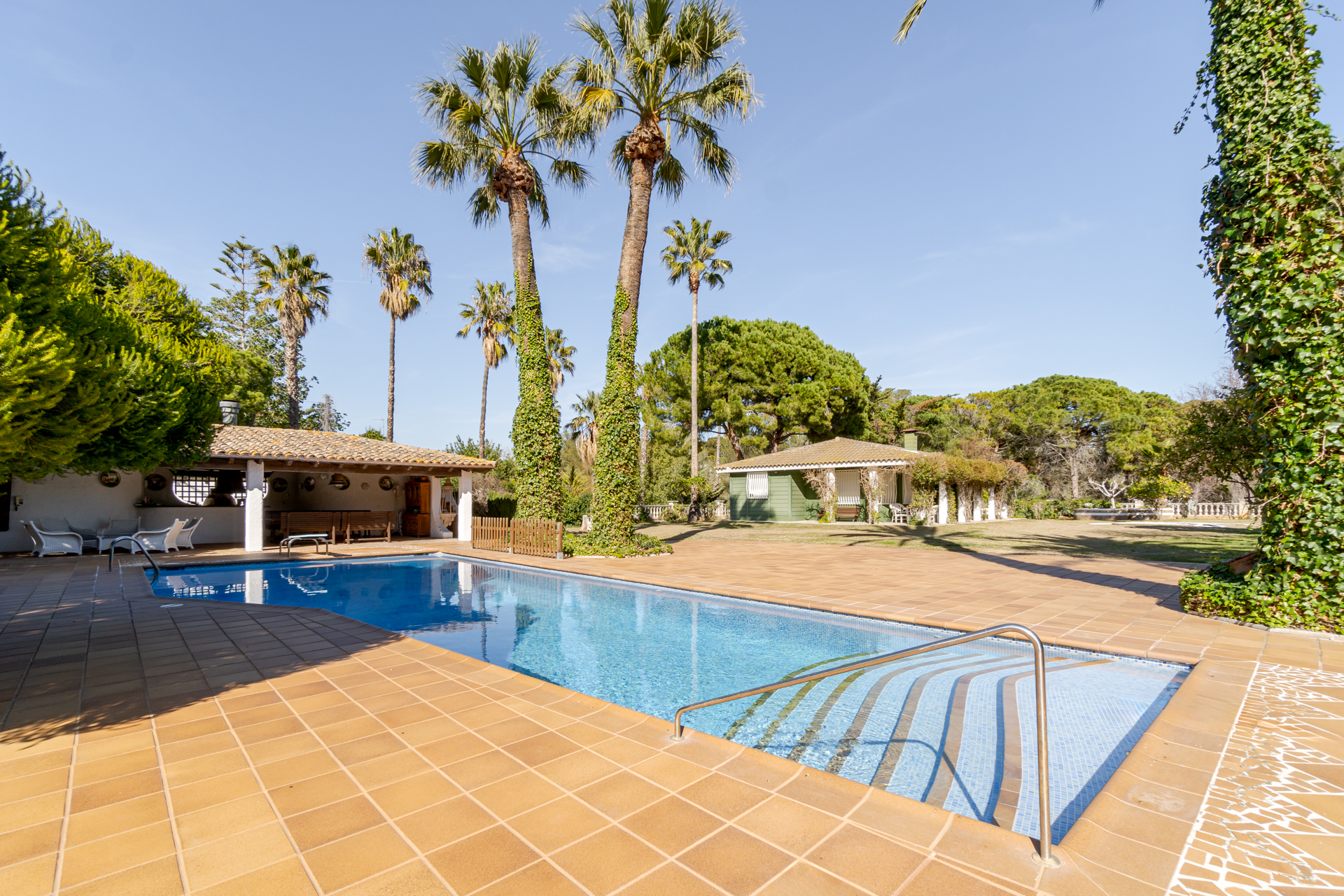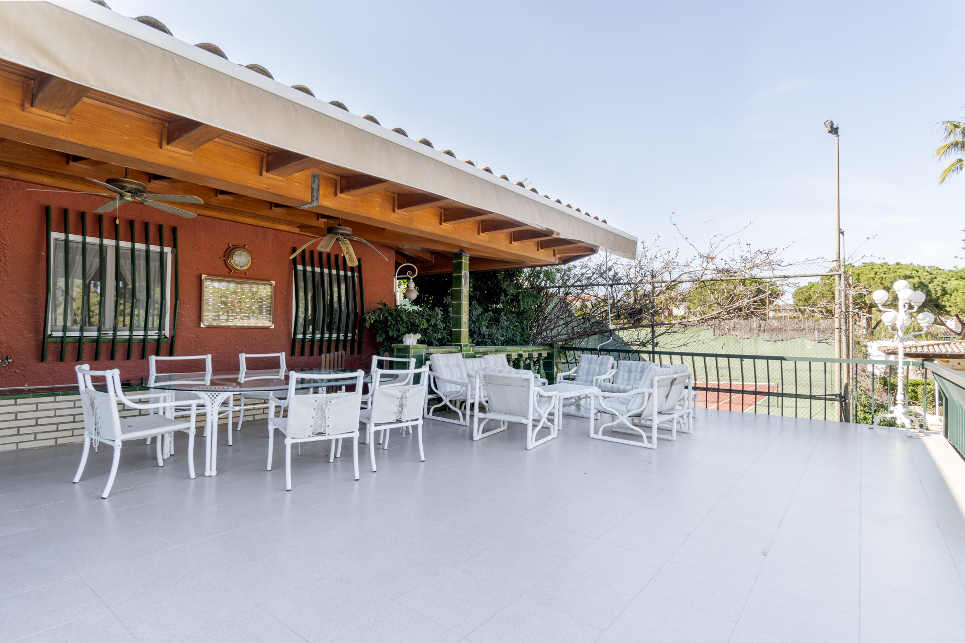 Cuenta con una pista de tenis, una gran piscina de uso privado, una amplia zona de barbacoa con comedor exterior, zona de estar, vestuarios y baño completo.