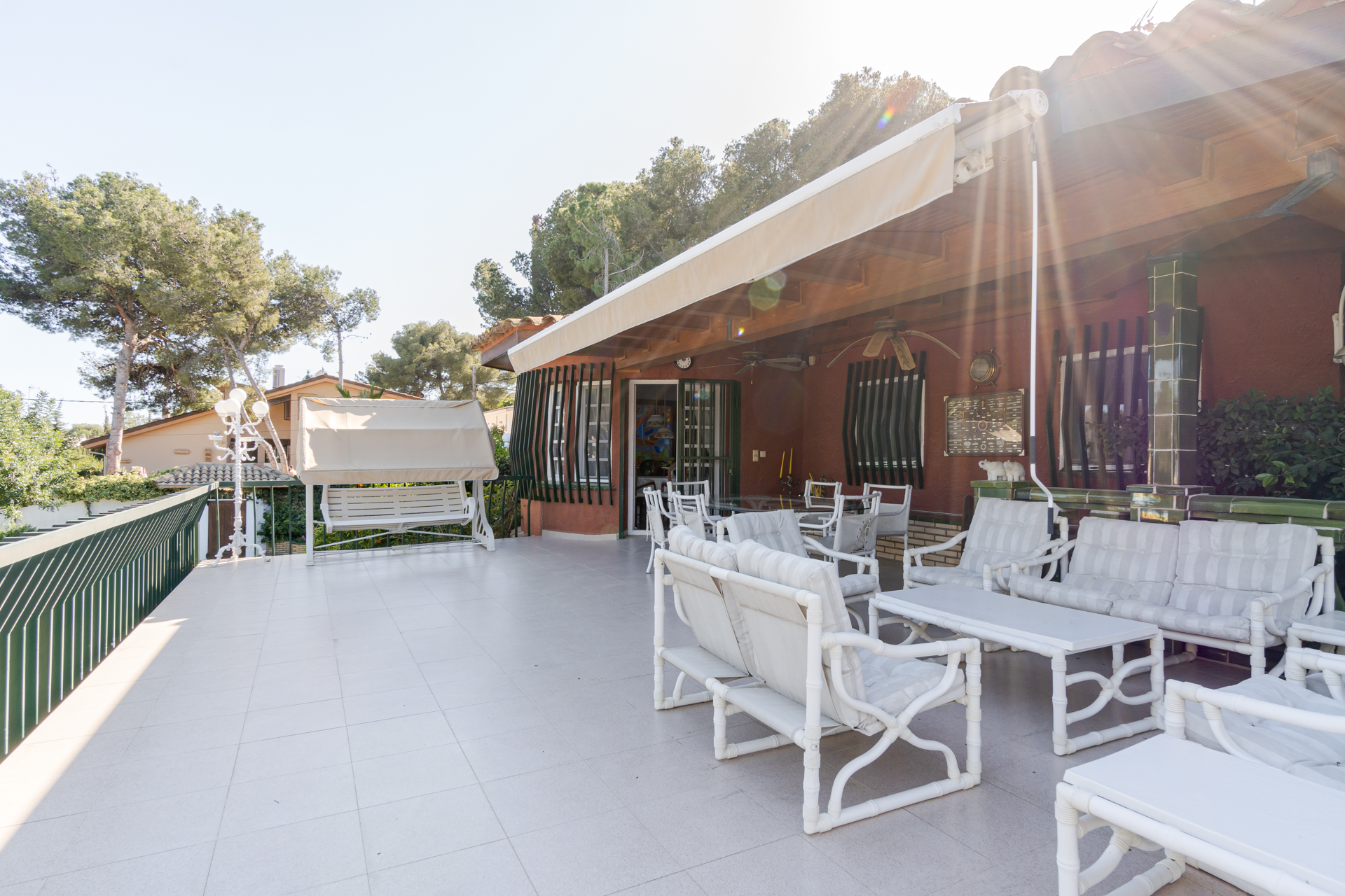 Sin lugar a dudas un espacio increíble para disfrutar de un gran ambiente para adultos y para los mas pequeños de la casa, al disponer también de zona de ocio y juegos además de columpios.