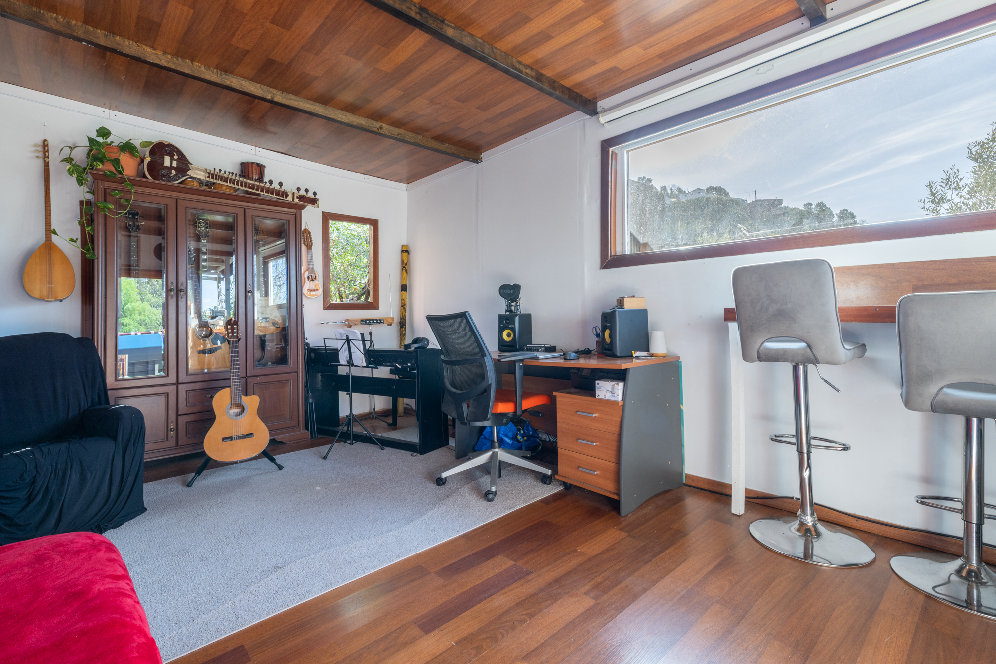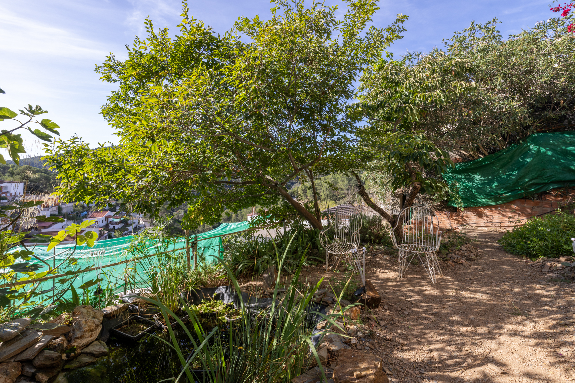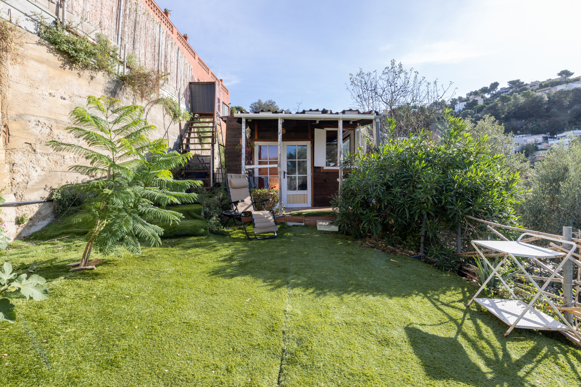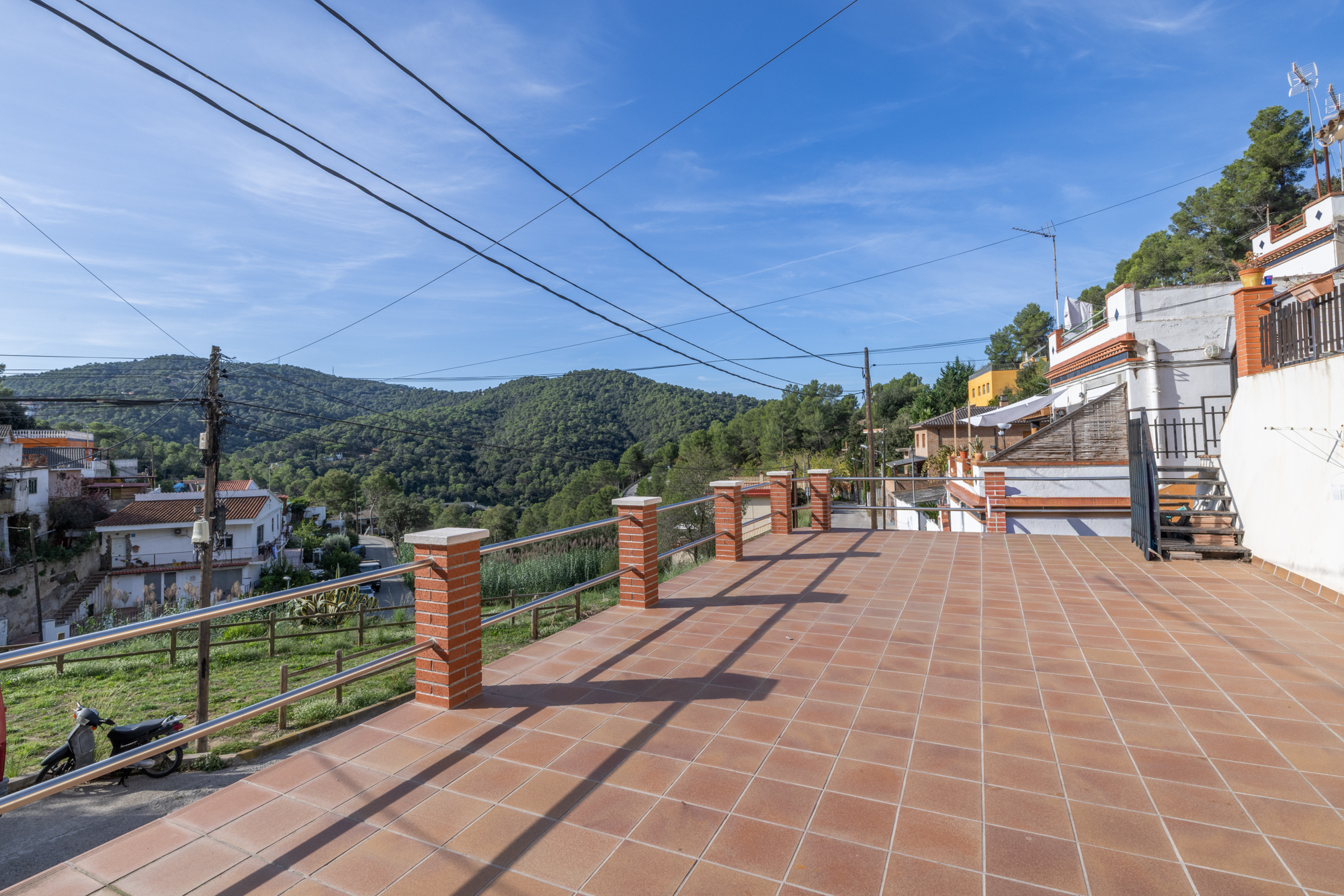 La vivienda dispone además de dos amplias terrazas: una en planta, ideal para disfrutar del sol y las comidas al aire libre, y otra frente a la casa, con vistas abiertas a la montaña. En la parte superior del inmueble se encuentra una acogedora casita tipo despacho, perfecta como zona de trabajo o estudio, con mucha luz natural y vistas panorámicas impresionantes.