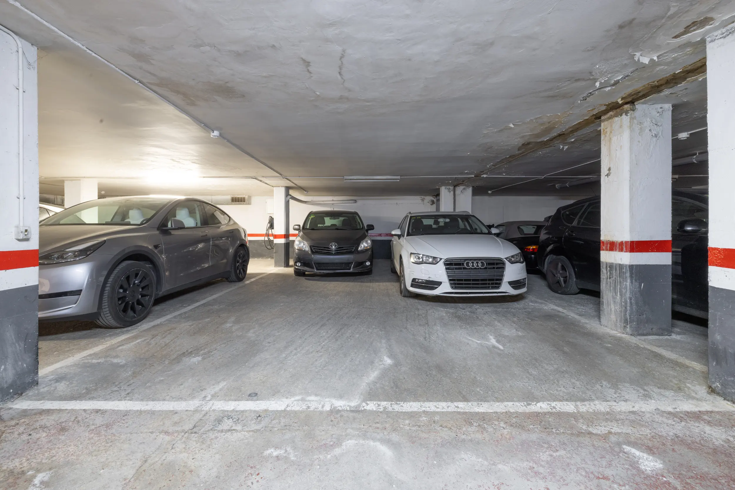 La vivienda incluye una amplia plaza de parking de aproximadamente 40 m², ideal para varios vehículos o para disponer de espacio adicional de almacenamiento, así como trasteros adicionales.