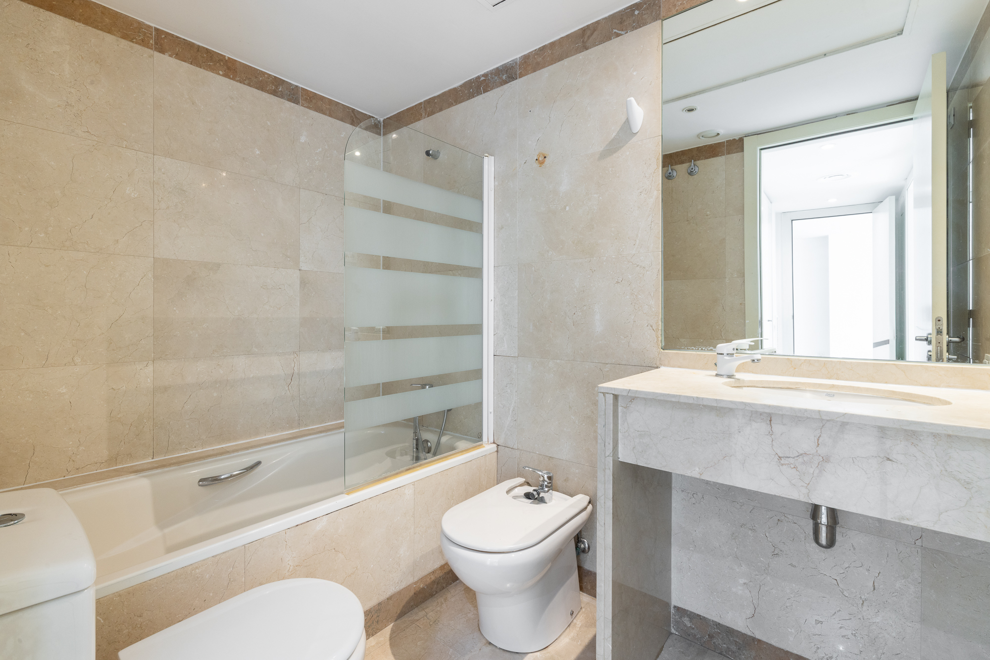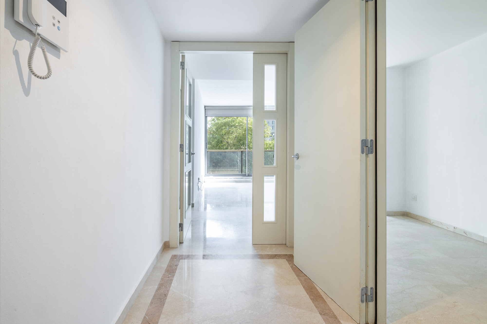 El piso cuenta con 93 m² construidos, más una agradable terraza de 7 m², ofrece una luminosa sala de estar con salida directa una terraza con vistas despejadas, una cocina office totalmente equipada con galería. La zona de noche cuenta con dos dormitorios con armario empotrado y un baño completo. La vivienda dispone de aire acondicionado y calefacción por conductos integrados en el techo, suelos de mármol y cocina a gas natural: calidades pensadas para el máximo confort.