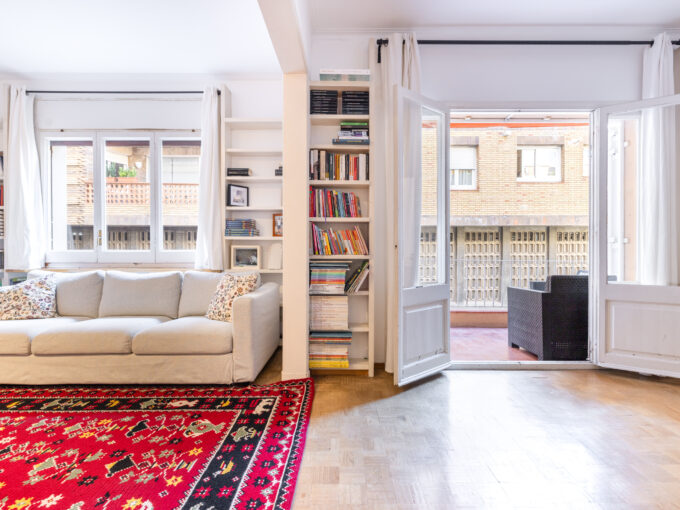 El piso dispone de tres habitaciones (dos de ellas dobles), un baño reformado con acabados modernos, y detalles que aportan confort como el suelo de parquet, la calefacción por gas natural y aire acondicionado.