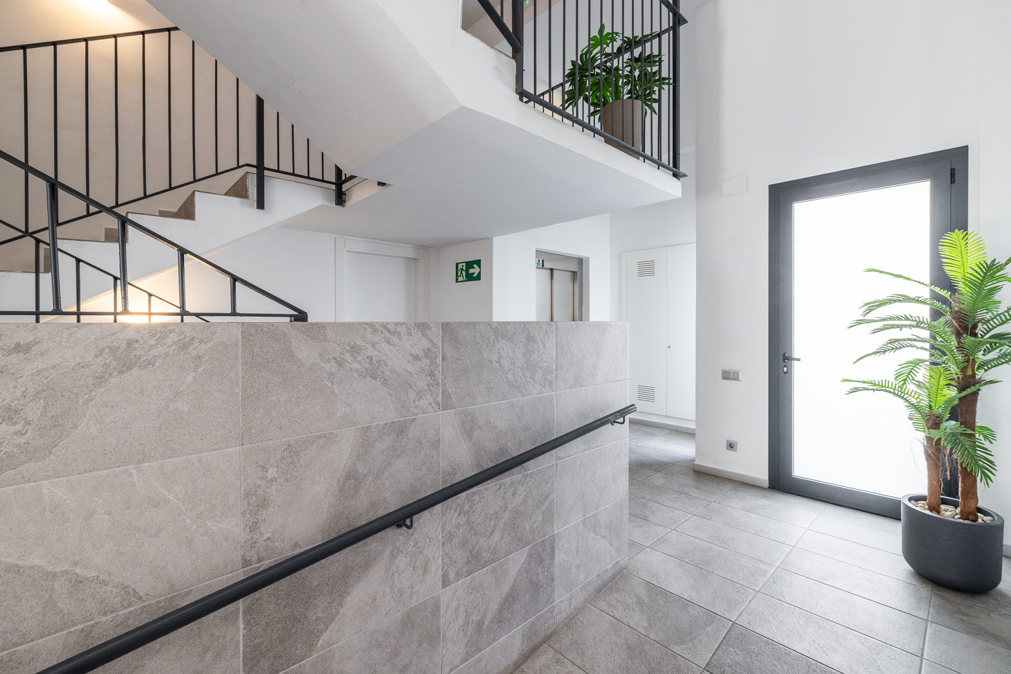 Accedemos a la vivienda mediante un gran y luminoso recibidor con ventanales al exterior que nos brinda acceso al piso.