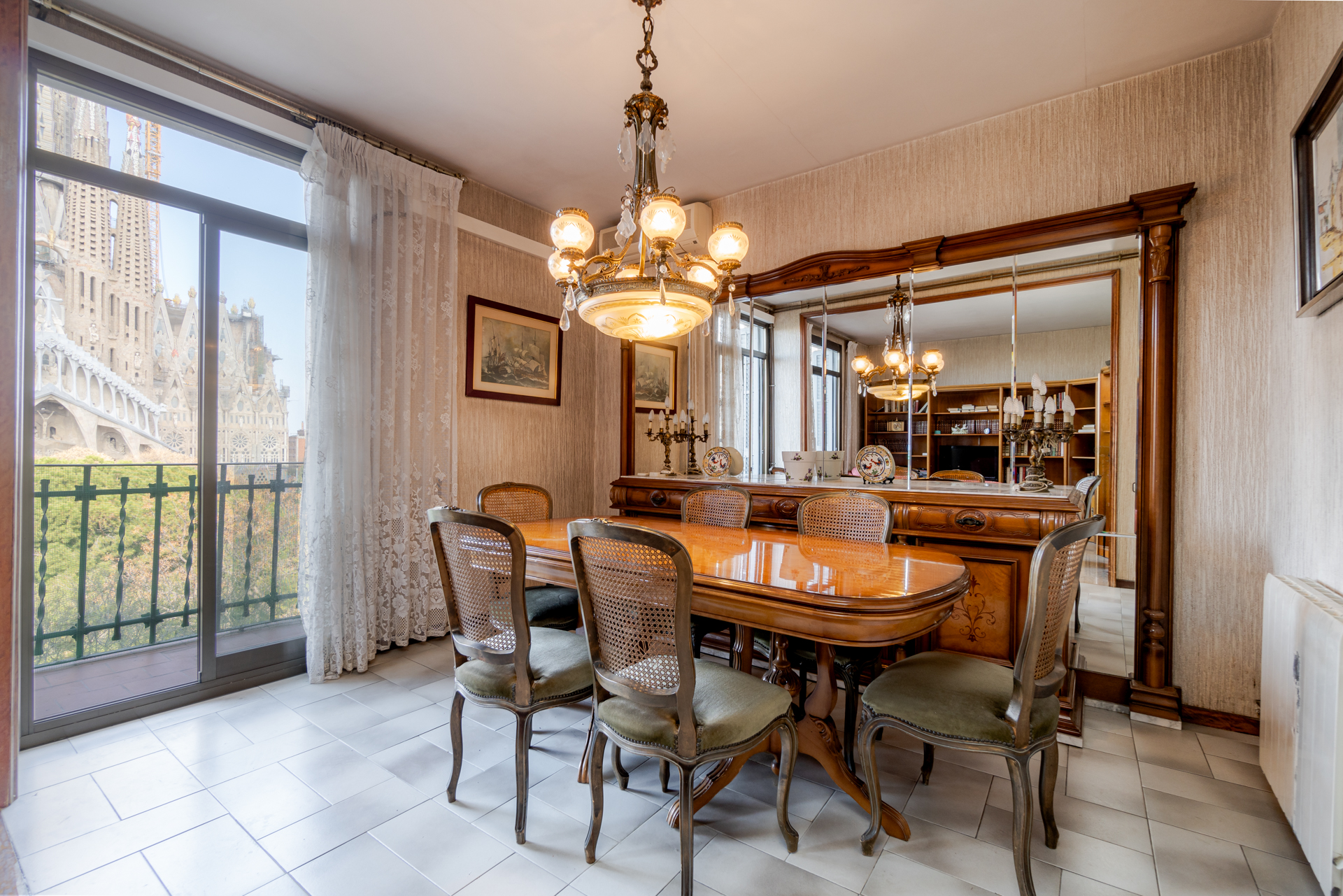 -Ofrece un espacioso Salón-Comedor: Un amplio espacio para el entretenimiento y la relajación, con acceso directo al balcón, donde se pueden admirar las impresionantes vistas de la Sagrada Familia.