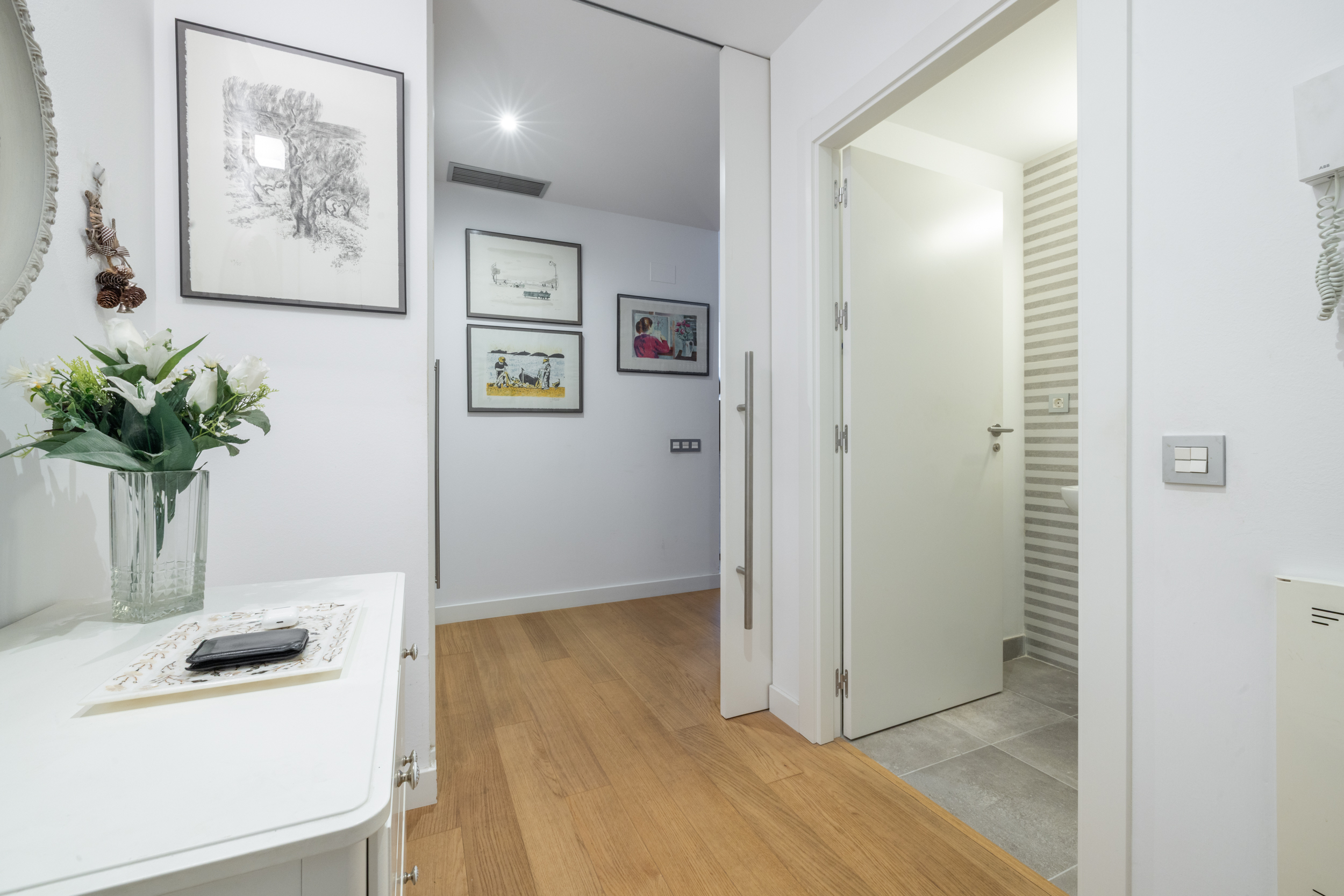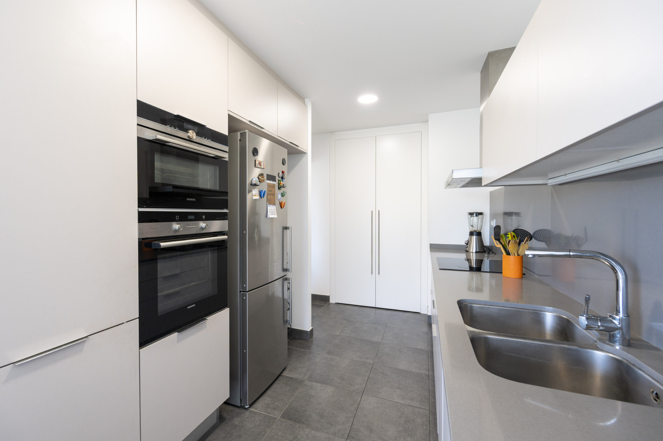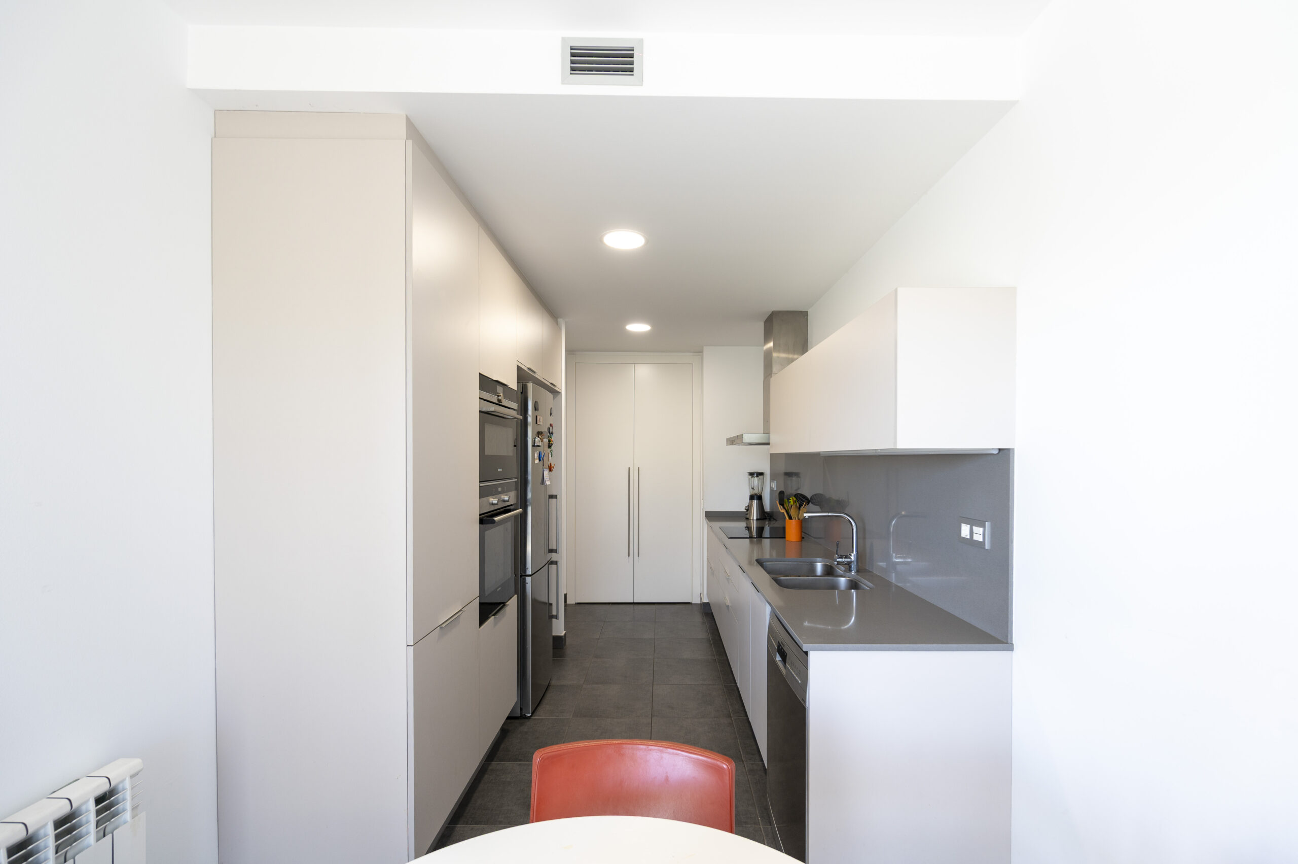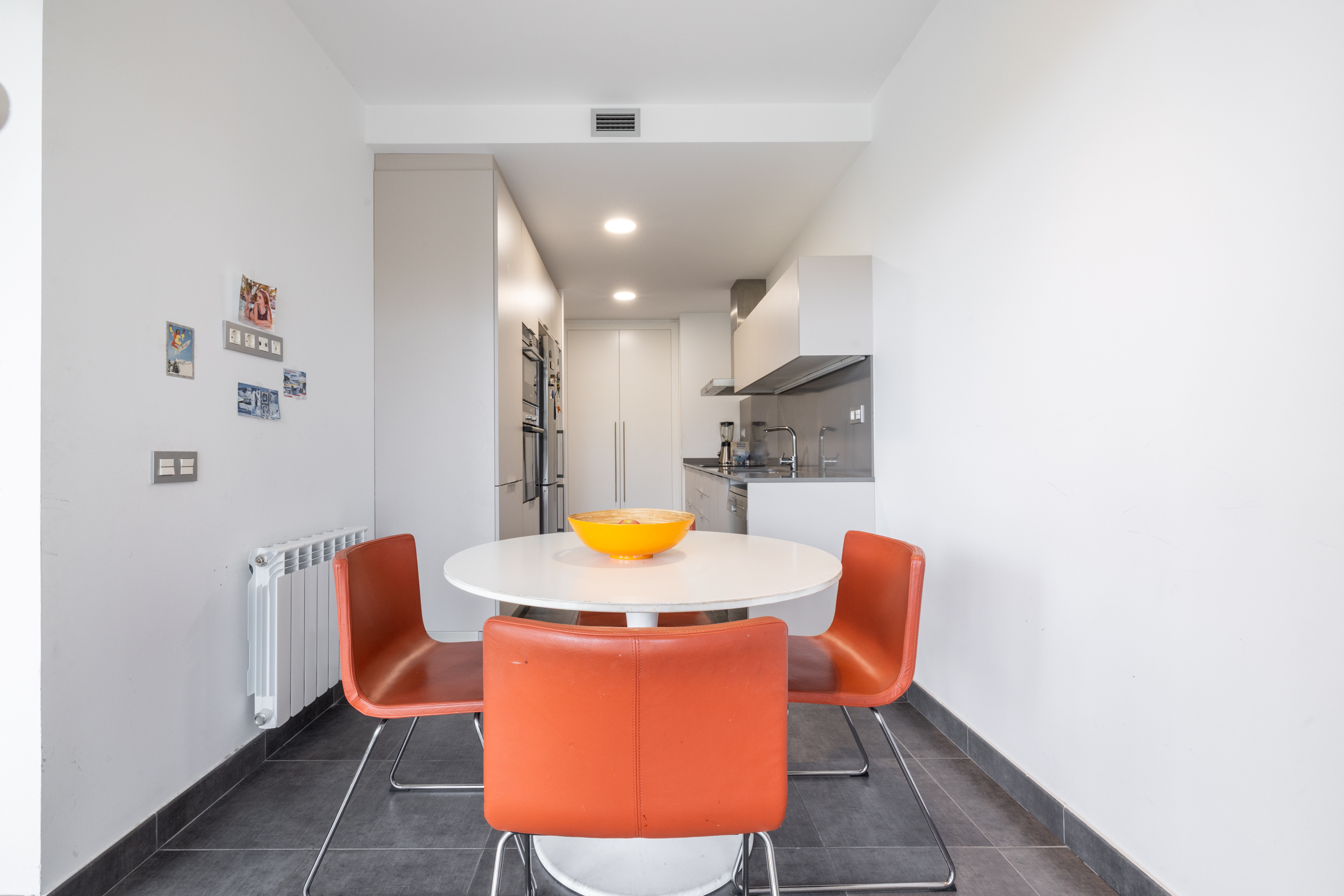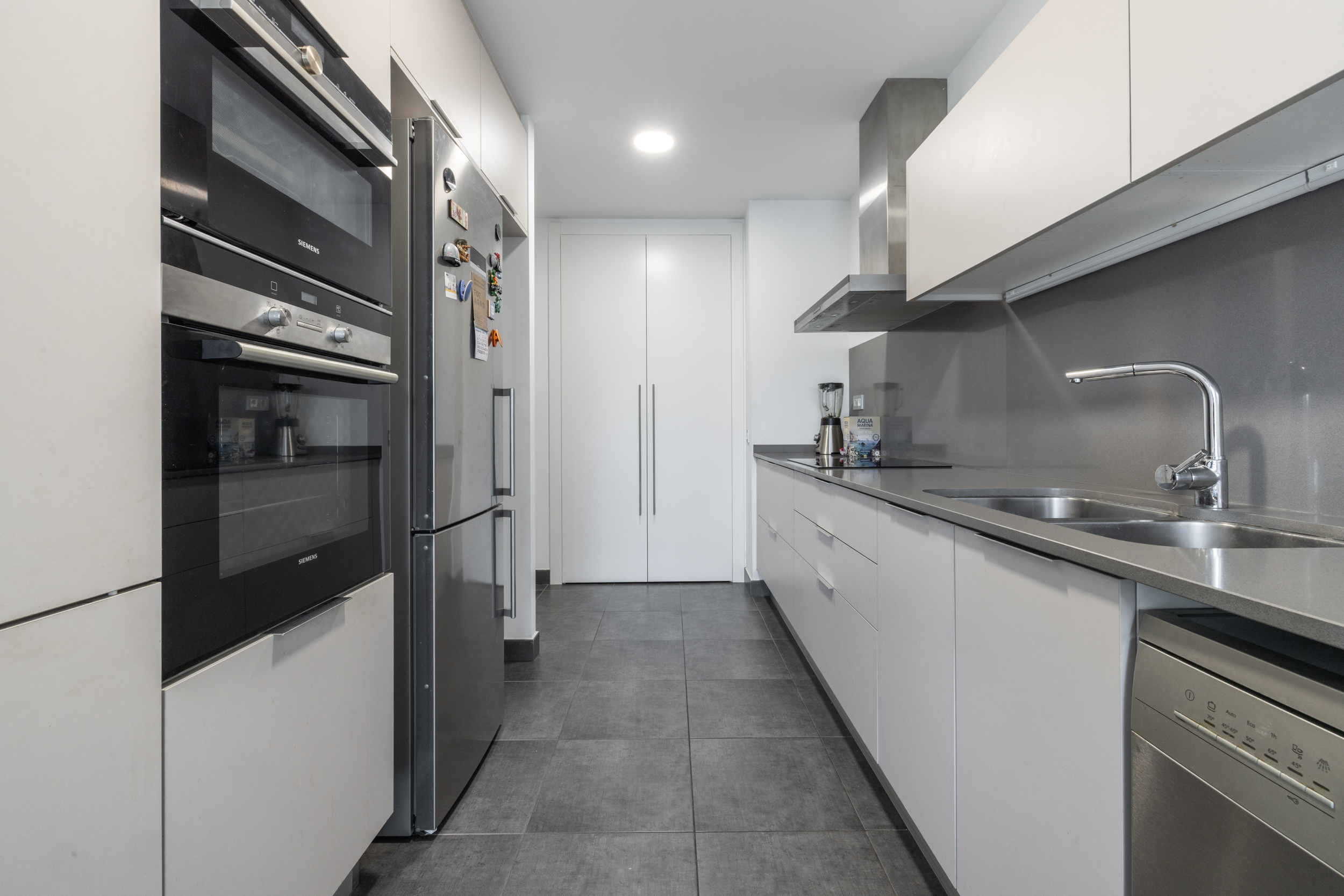 Los acabados de la vivienda refuerzan su carácter moderno y confortable: suelos de parquet de roble americano, carpintería de aluminio con doble acristalamiento, persianas motorizadas, climatización por conductos, armarios empotrados y una cocina equipada con electrodomésticos de primeras marcas. La vivienda dispone también de certificado energético B.