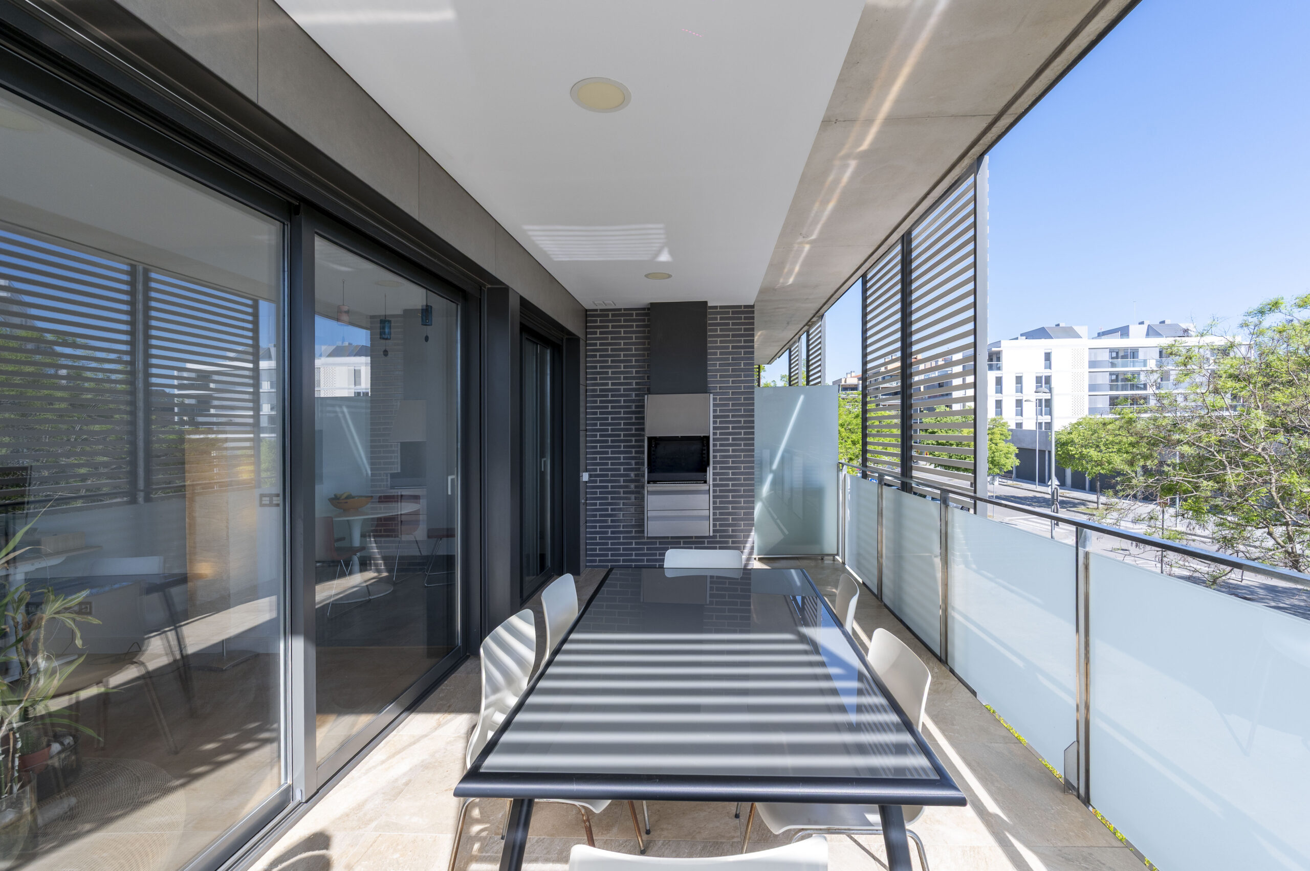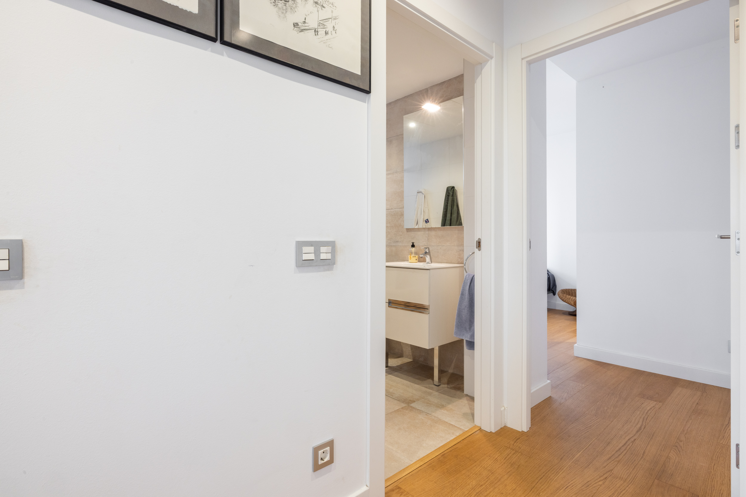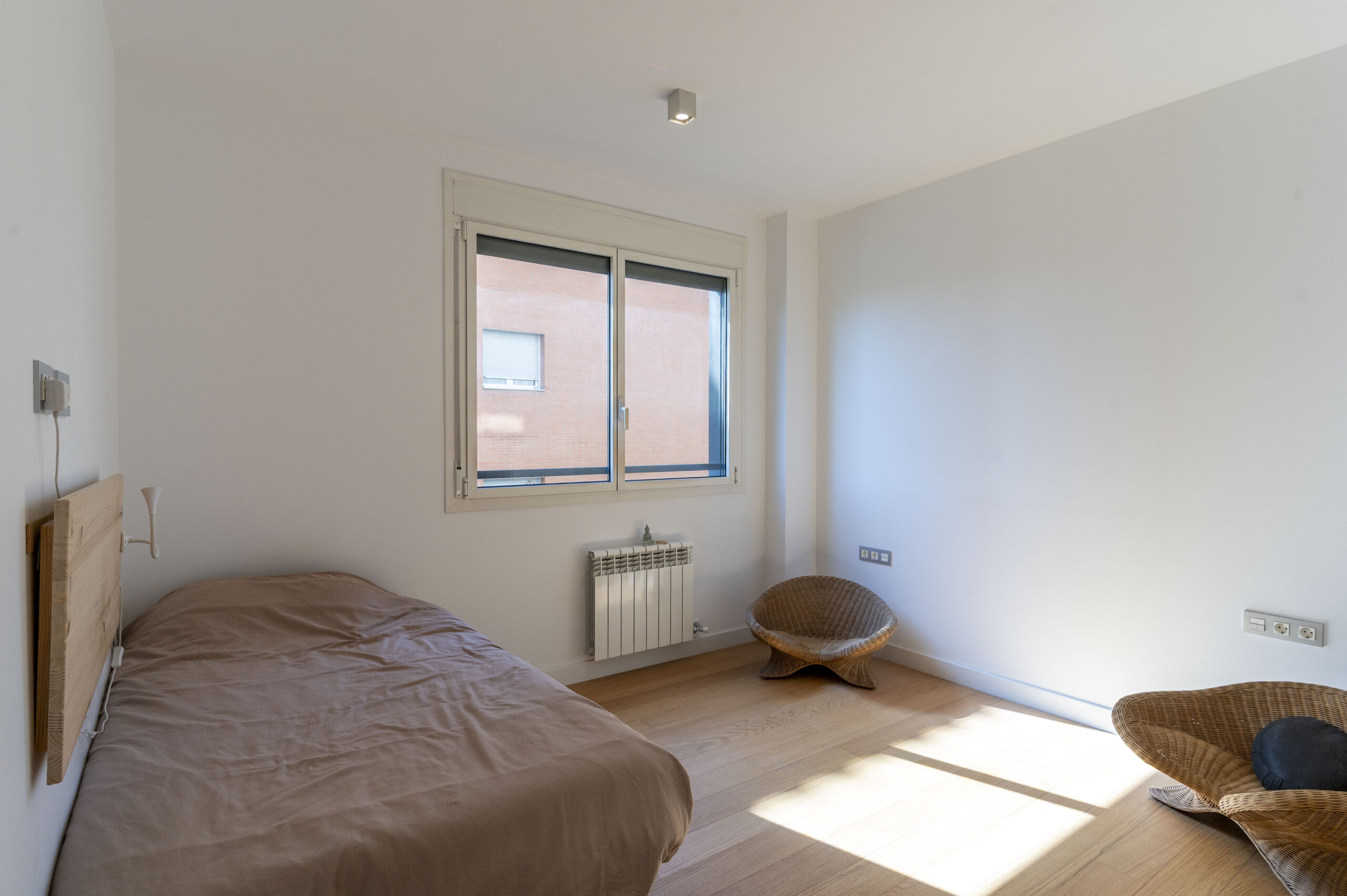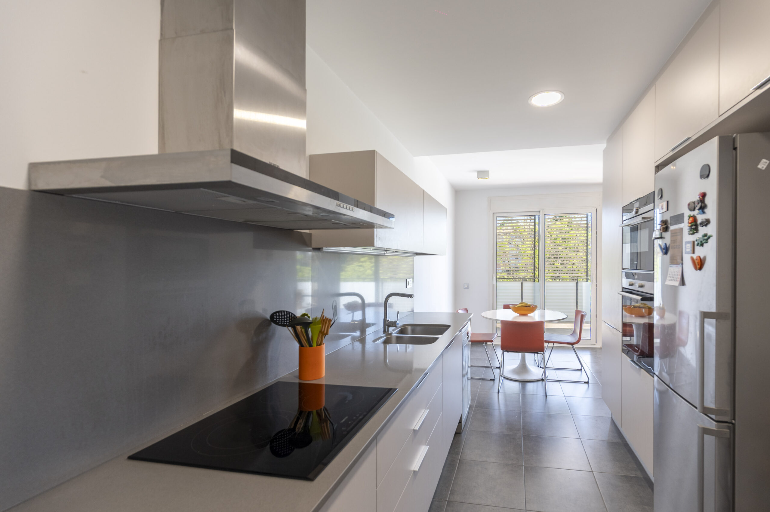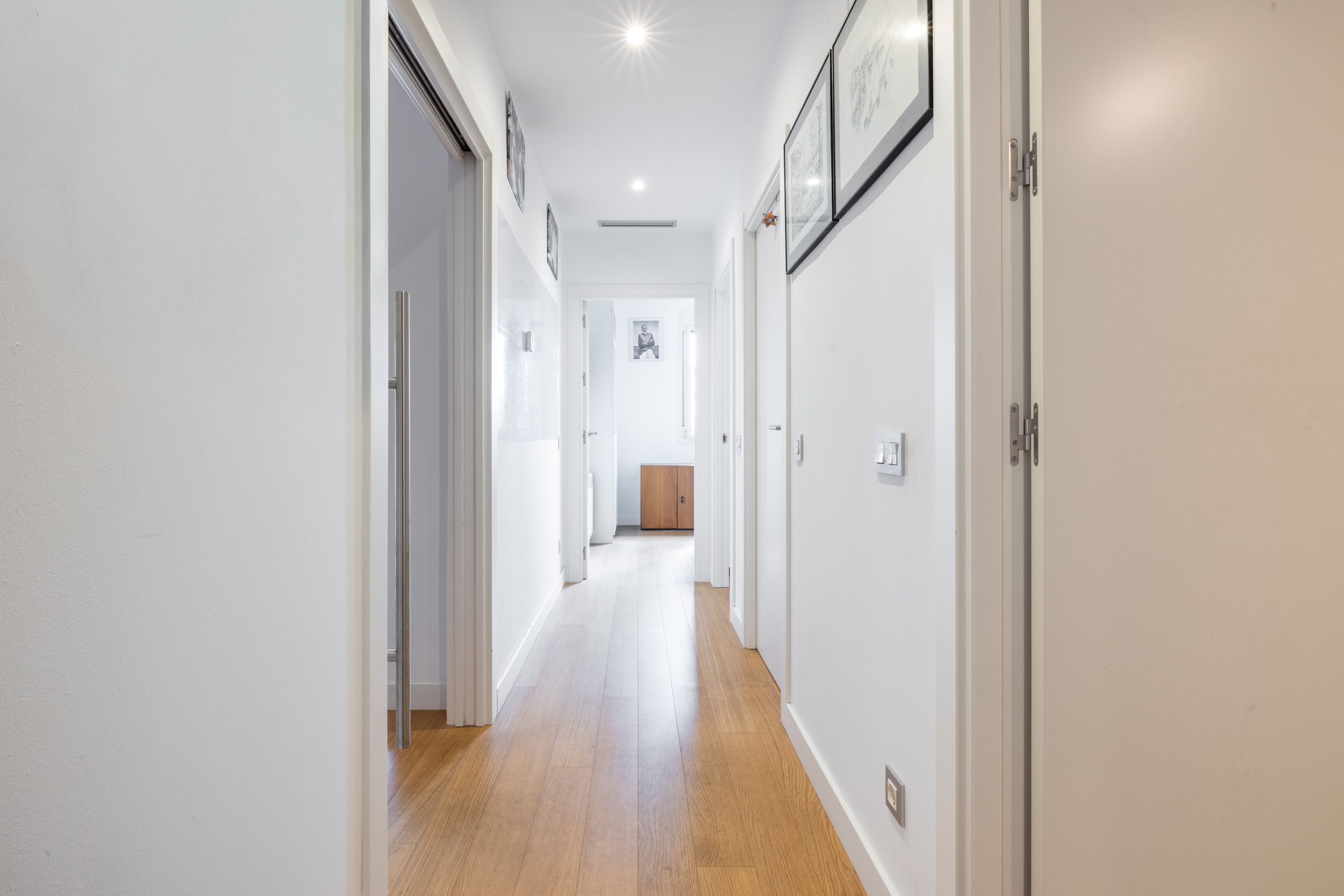 Los acabados de la vivienda refuerzan su carácter moderno y confortable: suelos de parquet de roble americano, carpintería de aluminio con doble acristalamiento, persianas motorizadas, climatización por conductos, armarios empotrados y una cocina equipada con electrodomésticos de primeras marcas. La vivienda dispone también de certificado energético B.