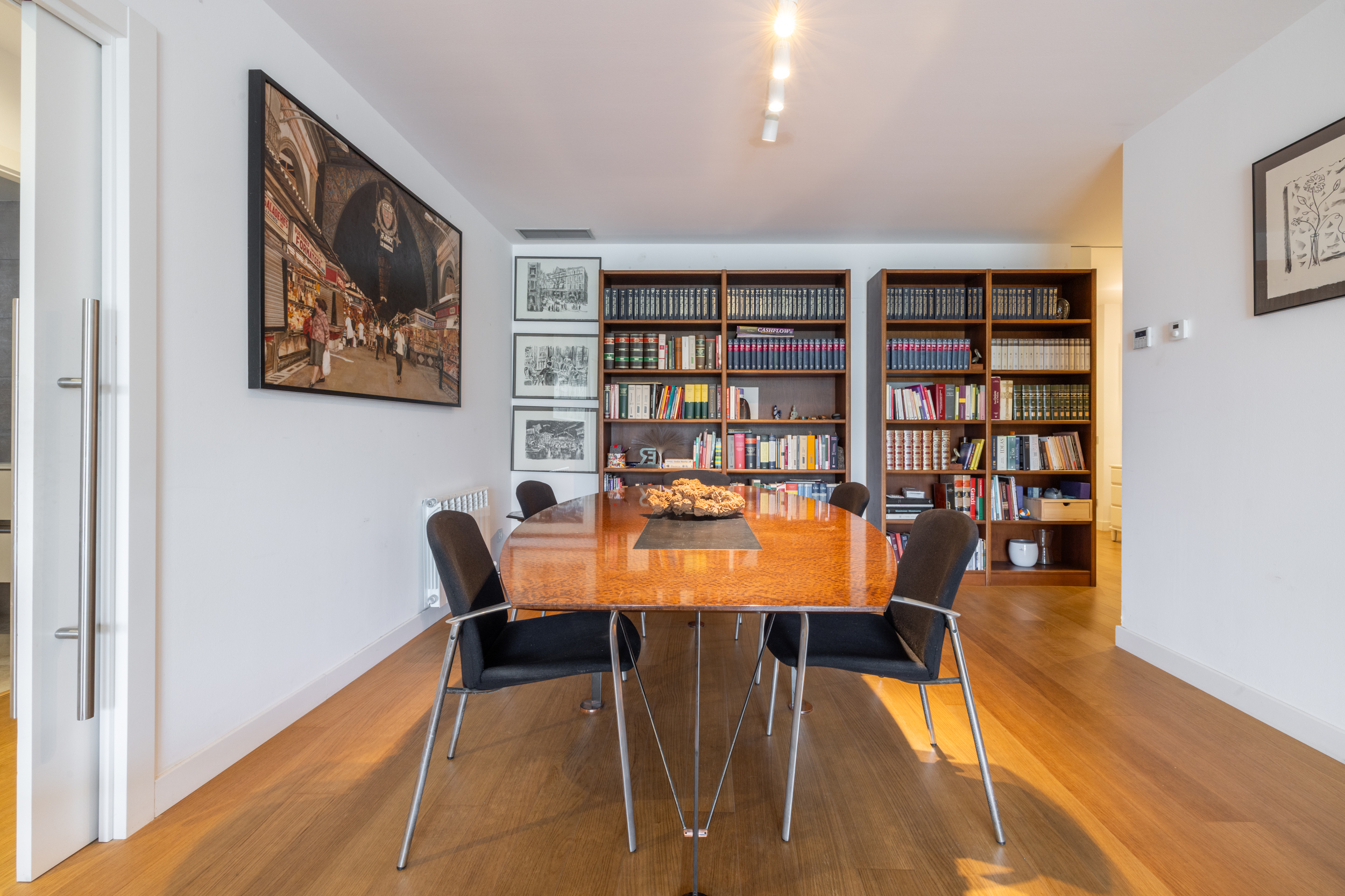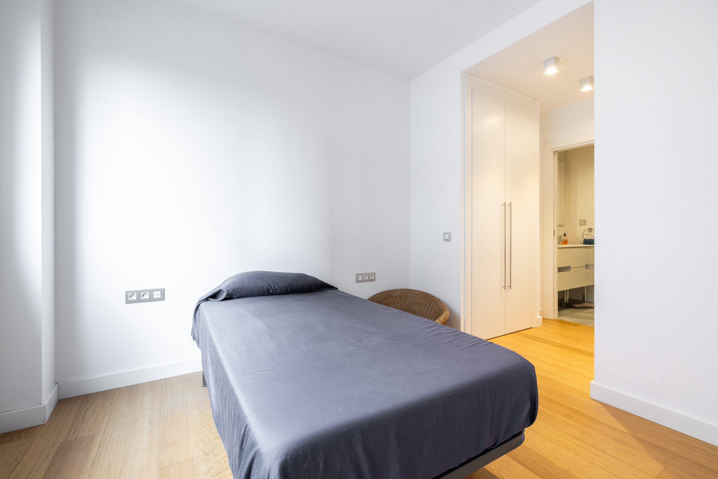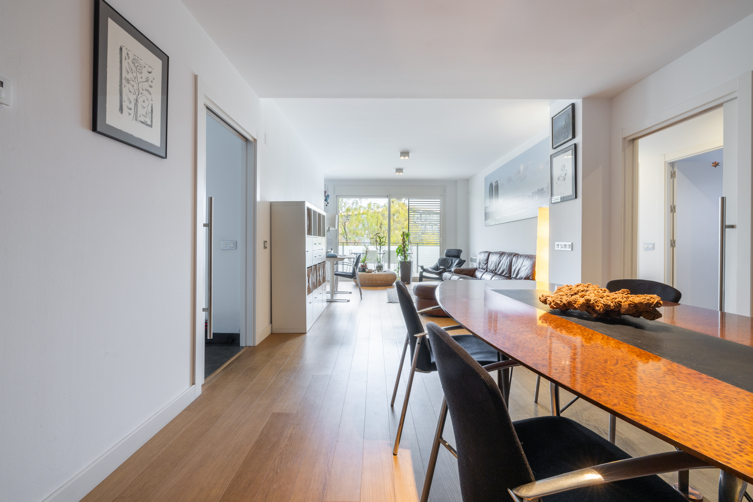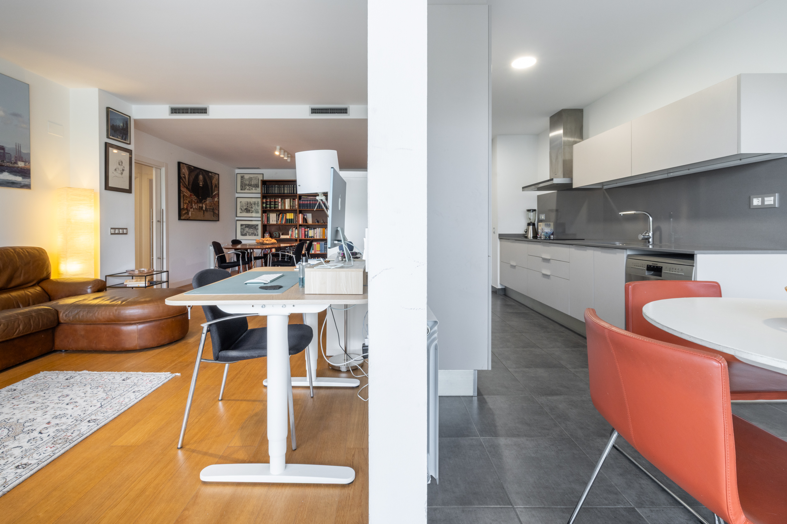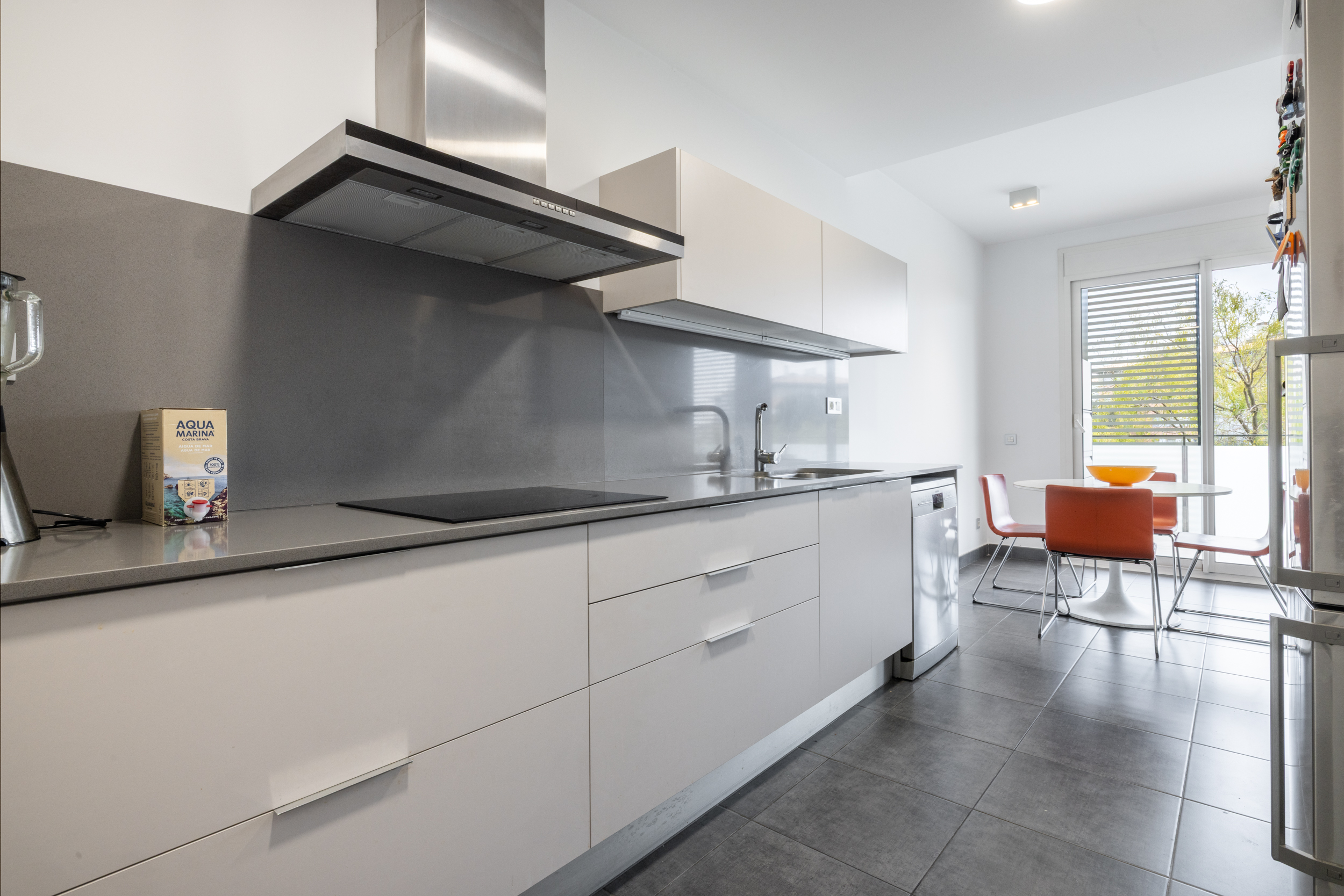 Los acabados de la vivienda refuerzan su carácter moderno y confortable: suelos de parquet de roble americano, carpintería de aluminio con doble acristalamiento, persianas motorizadas, climatización por conductos, armarios empotrados y una cocina equipada con electrodomésticos de primeras marcas. La vivienda dispone también de certificado energético B.